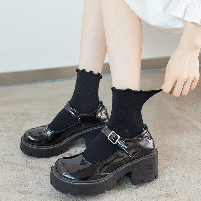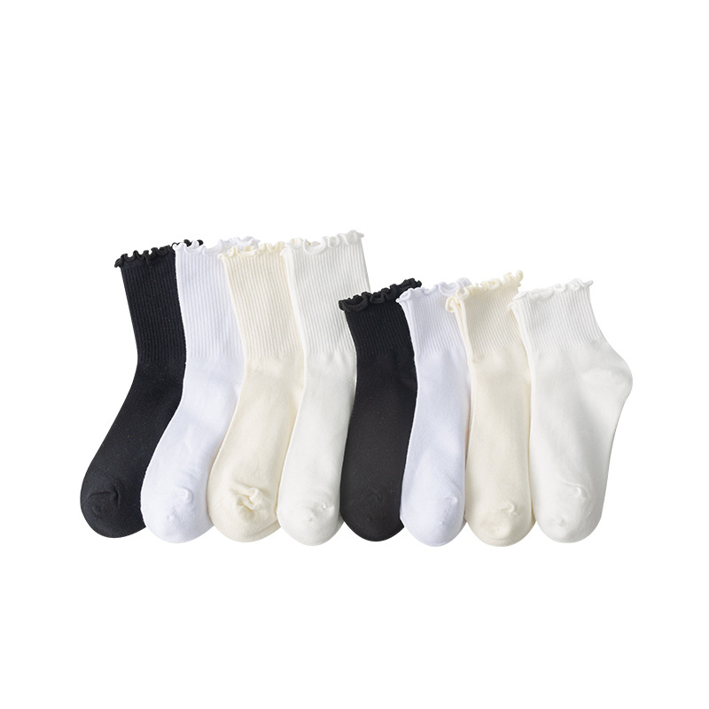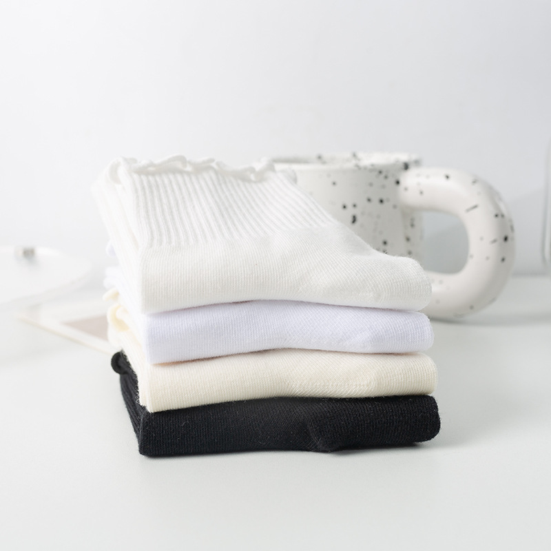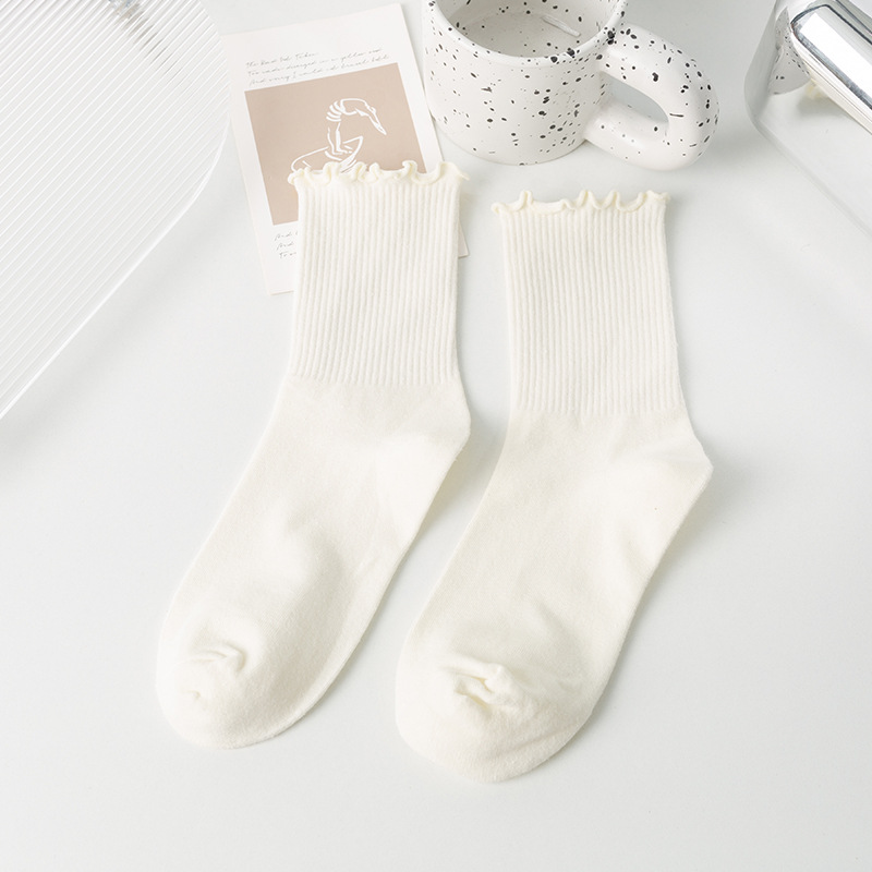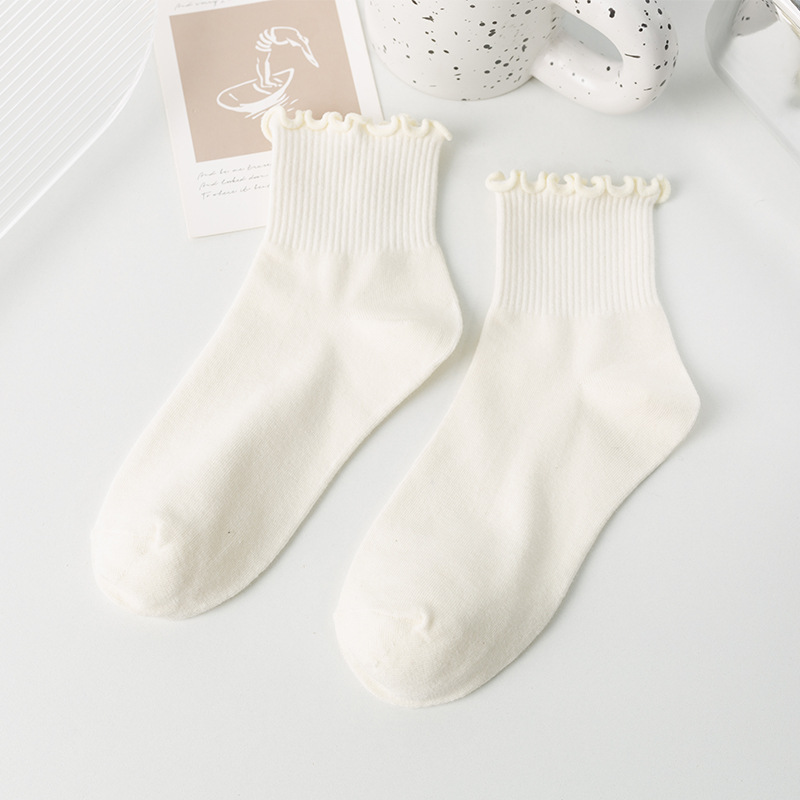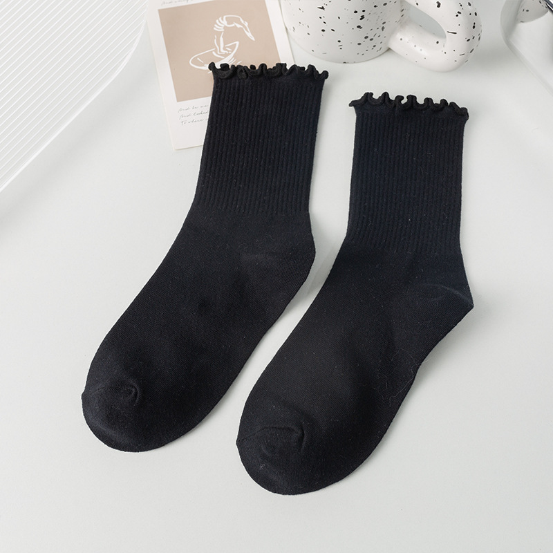 木耳边纯色中筒袜女生短筒袜春夏新款小红书爆款袜子时尚百搭女袜