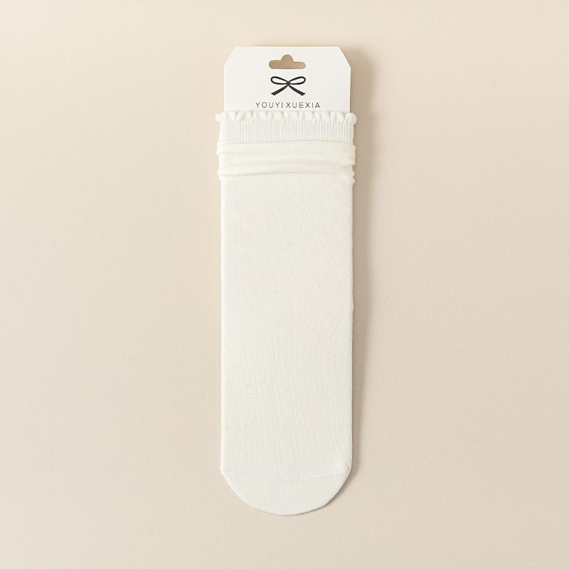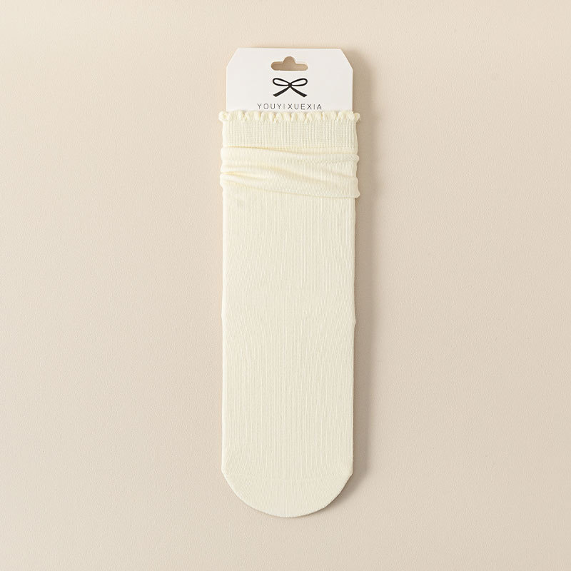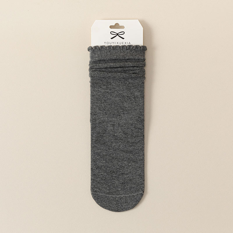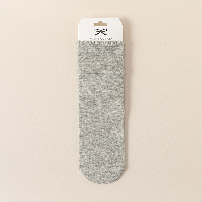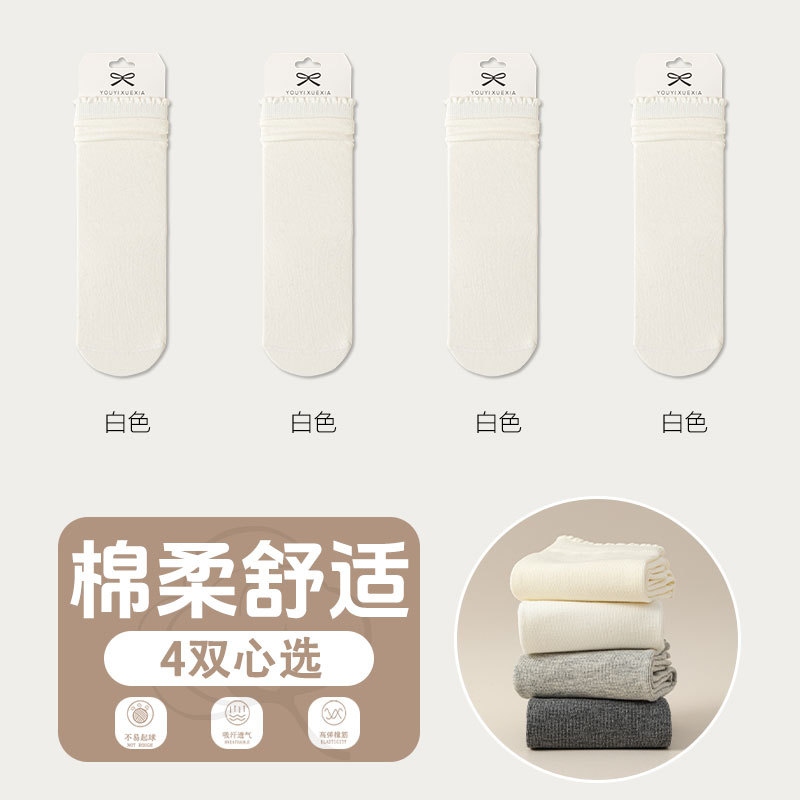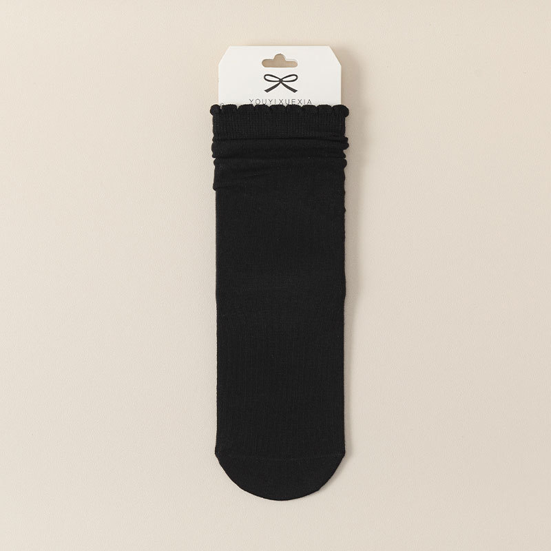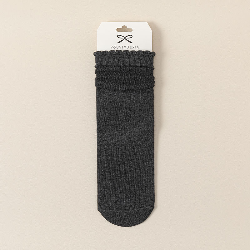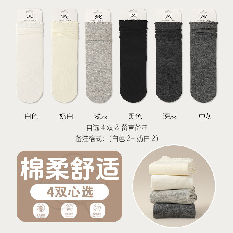 堆堆袜子女士春秋中筒袜日系少女无骨学院风木耳花边运动纯色棉袜