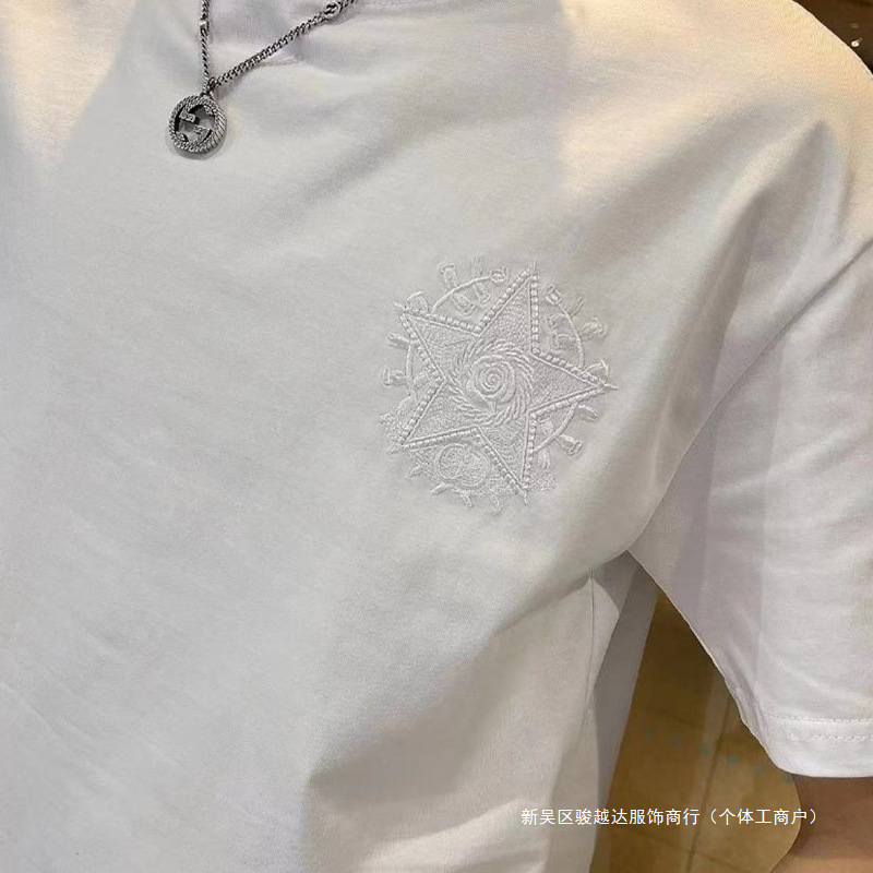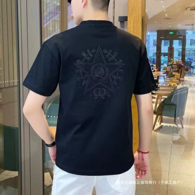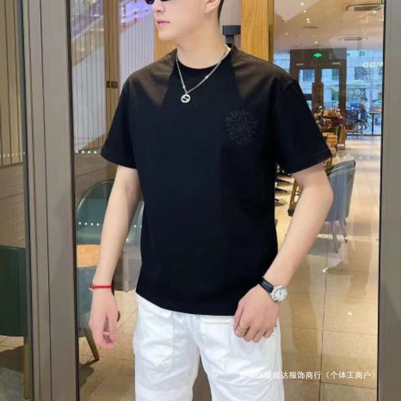 夏季新款刺绣圆领T恤男士韩版修身弹力半袖ins百搭休闲短袖男上衣