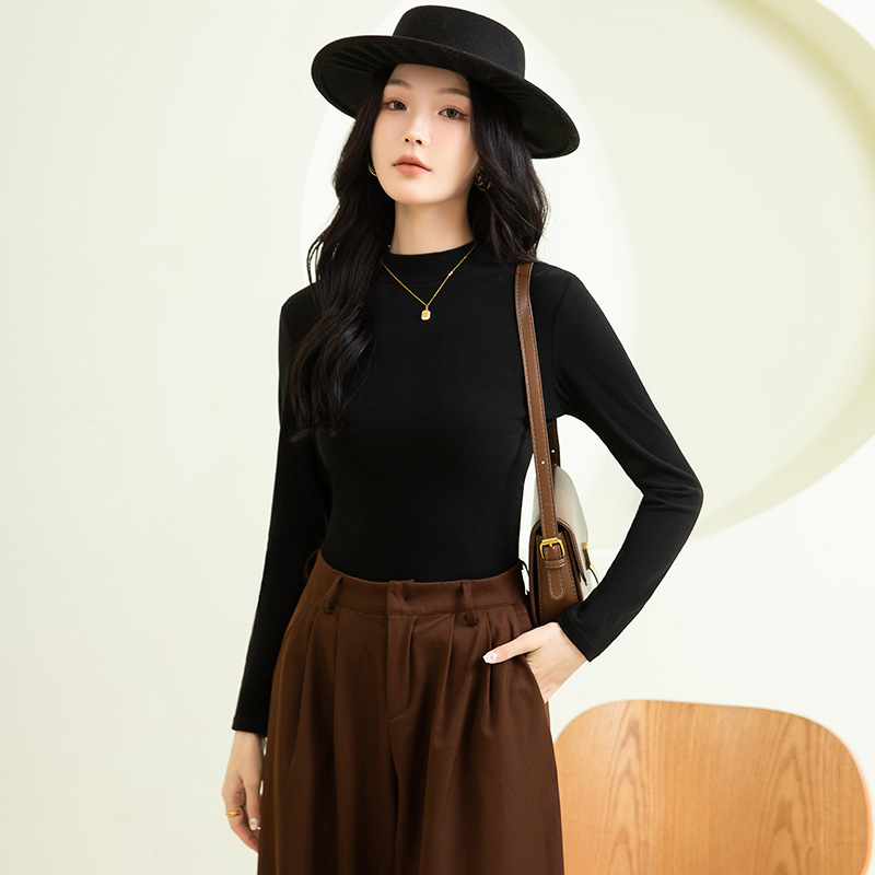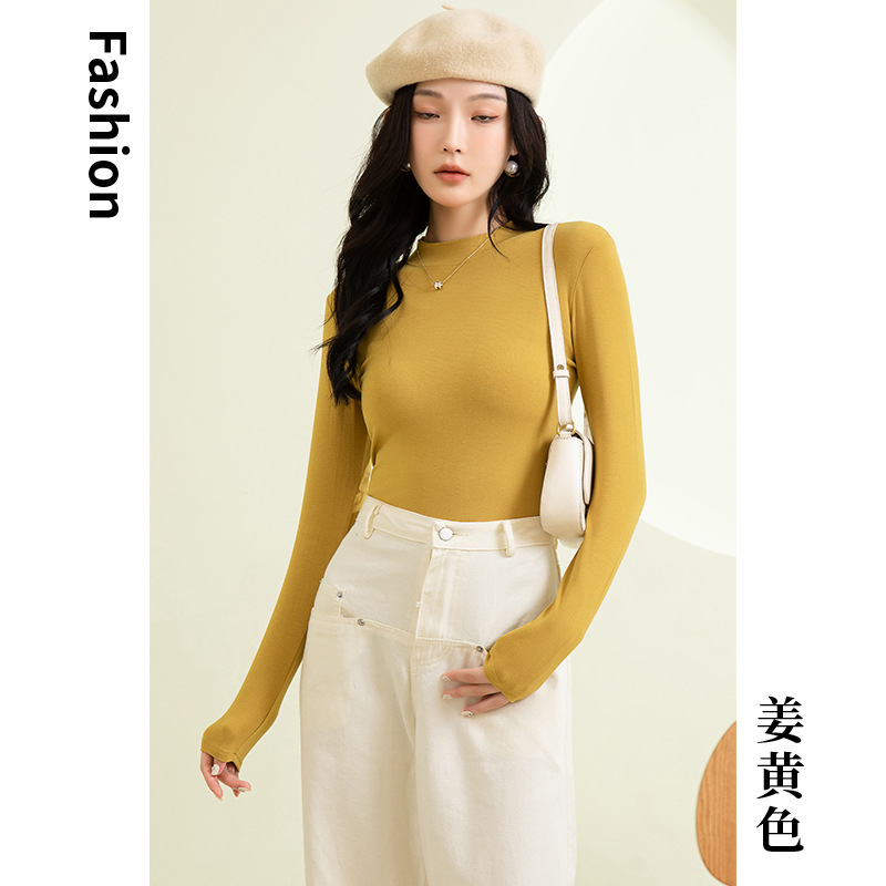 椰油打底衫半高领女士秋冬新款时尚修身内搭纯色长袖加厚保暖内衣