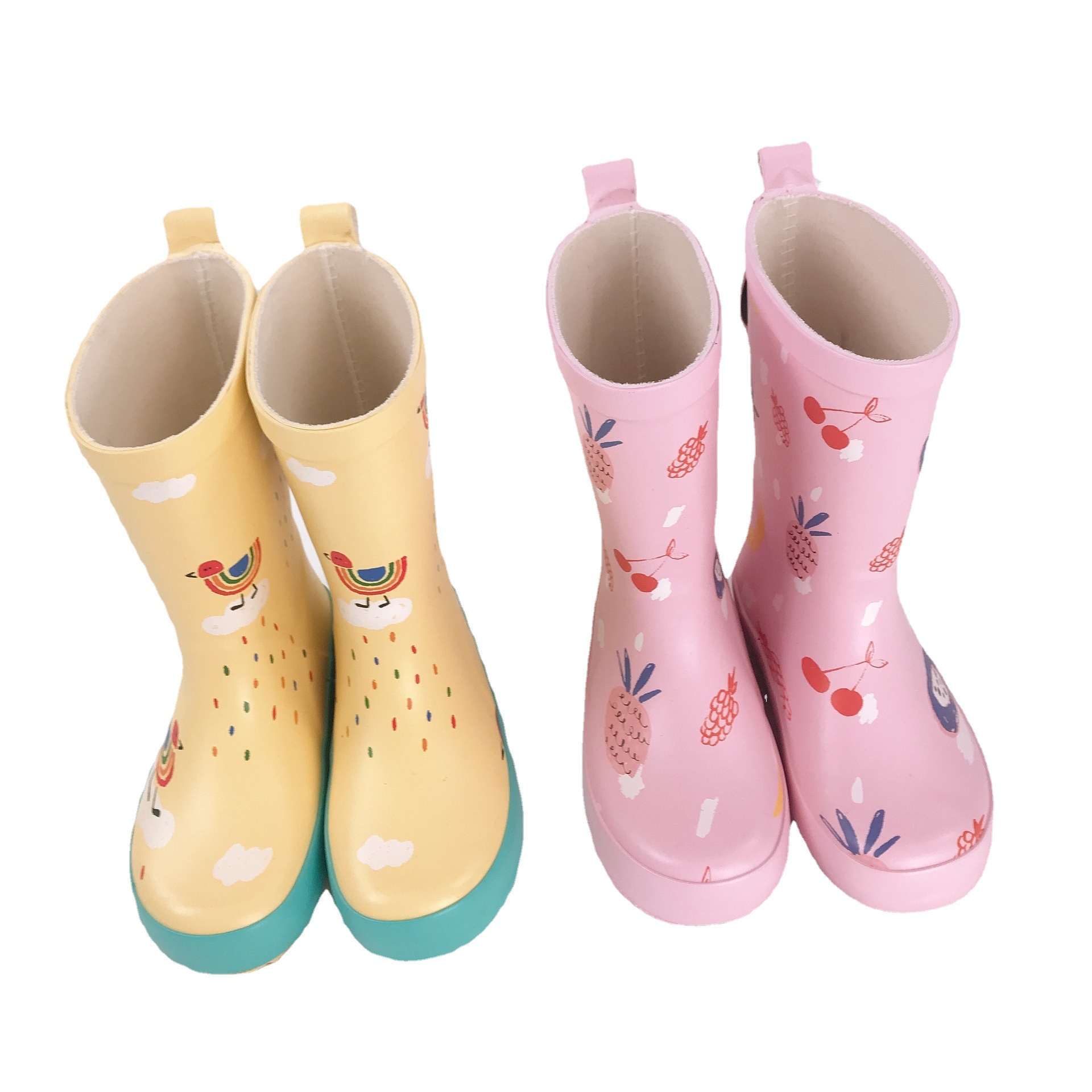 菠萝梅花童靴水鞋中筒雨靴橡胶儿童雨鞋
