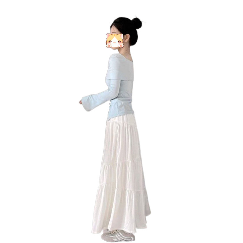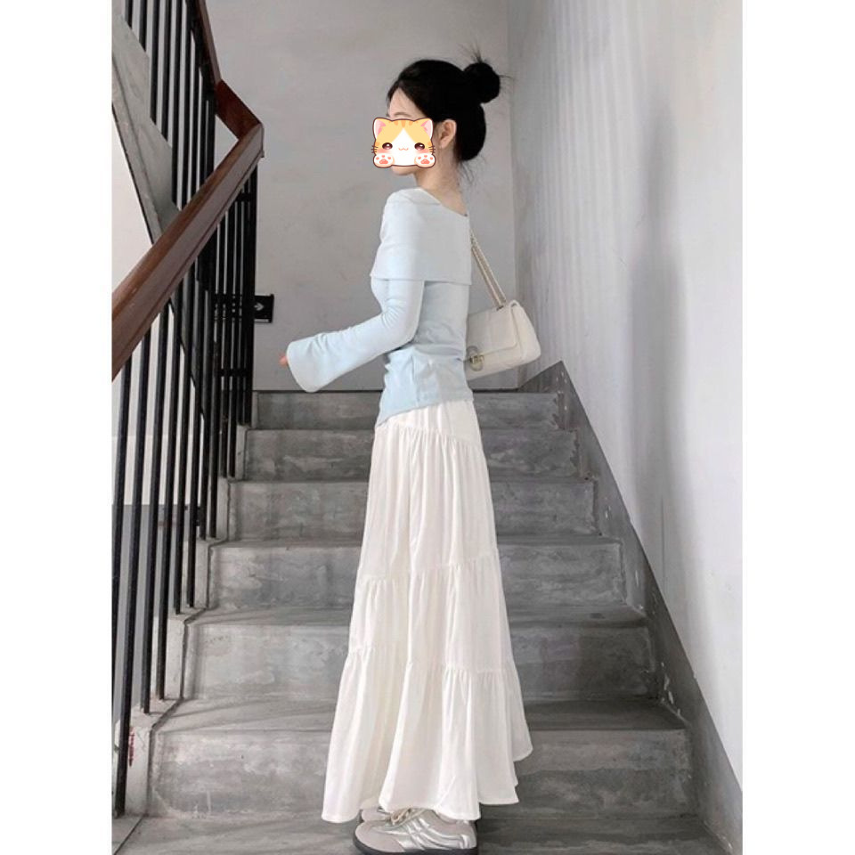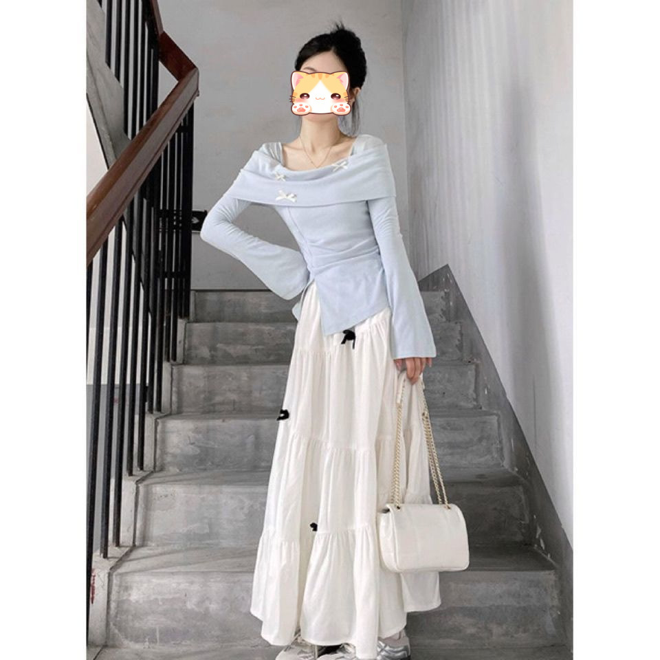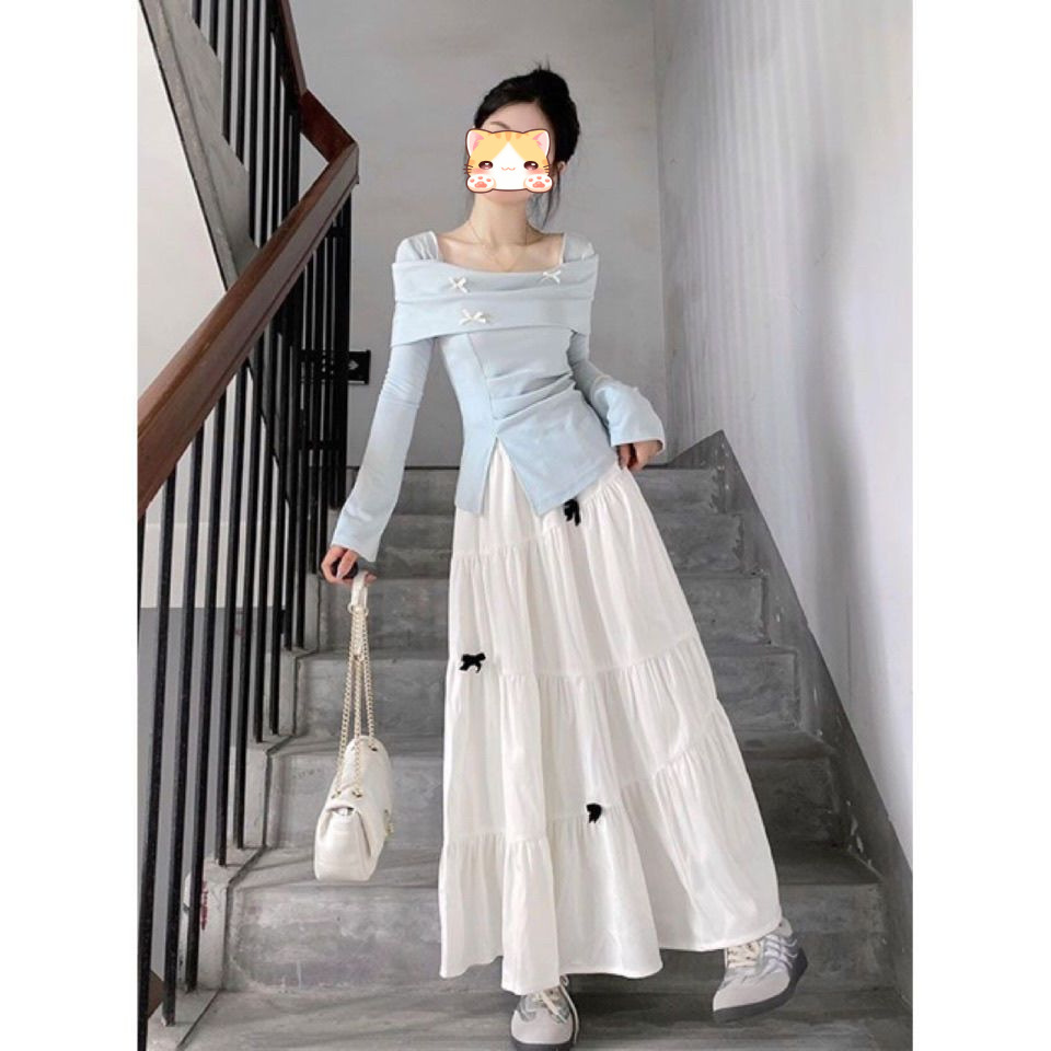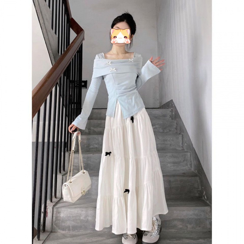 2025新款春夏季简约叠穿裙套装长袖套装蓝色温柔高端小裙子套装女