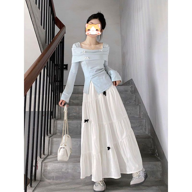 【浅蓝上衣+蝴蝶半身裙】 套装