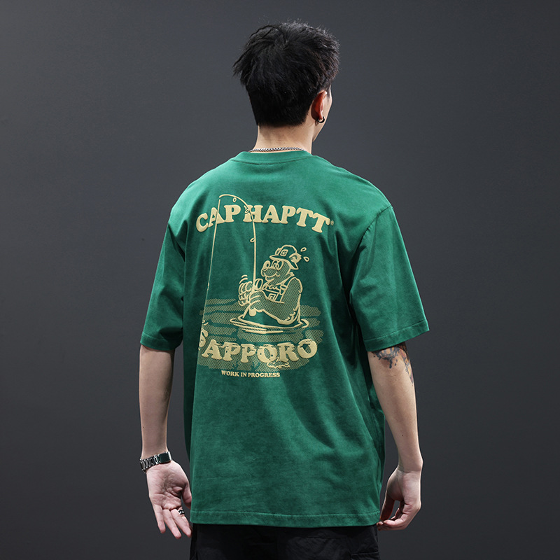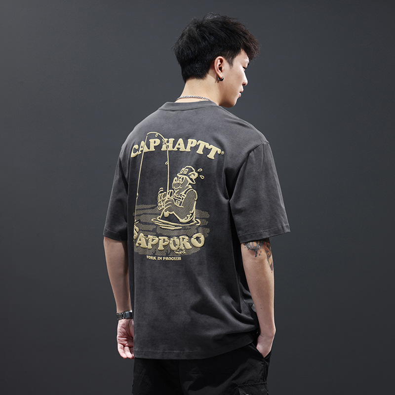 美式重磅男士短袖t恤纯棉印花夏季潮牌薄款宽松大码男装体恤