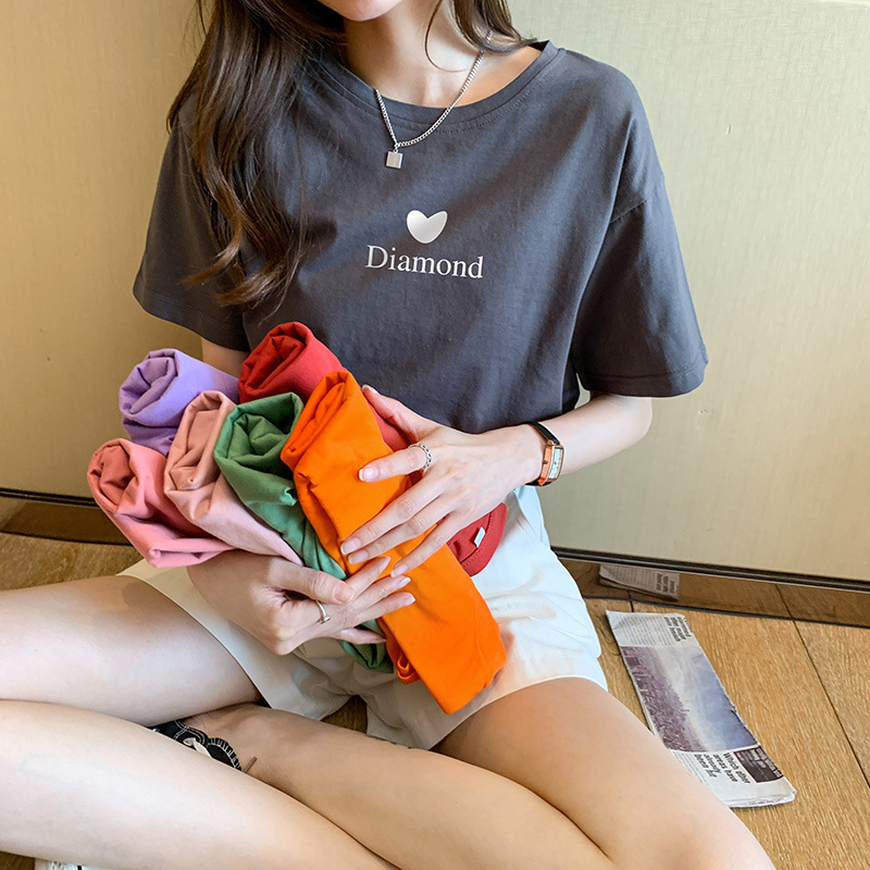 美式复古撞色字母插肩短袖t恤女学生夏季宽松休闲百搭半袖上衣潮