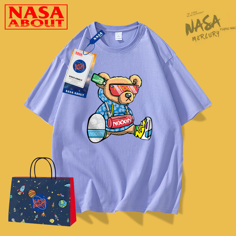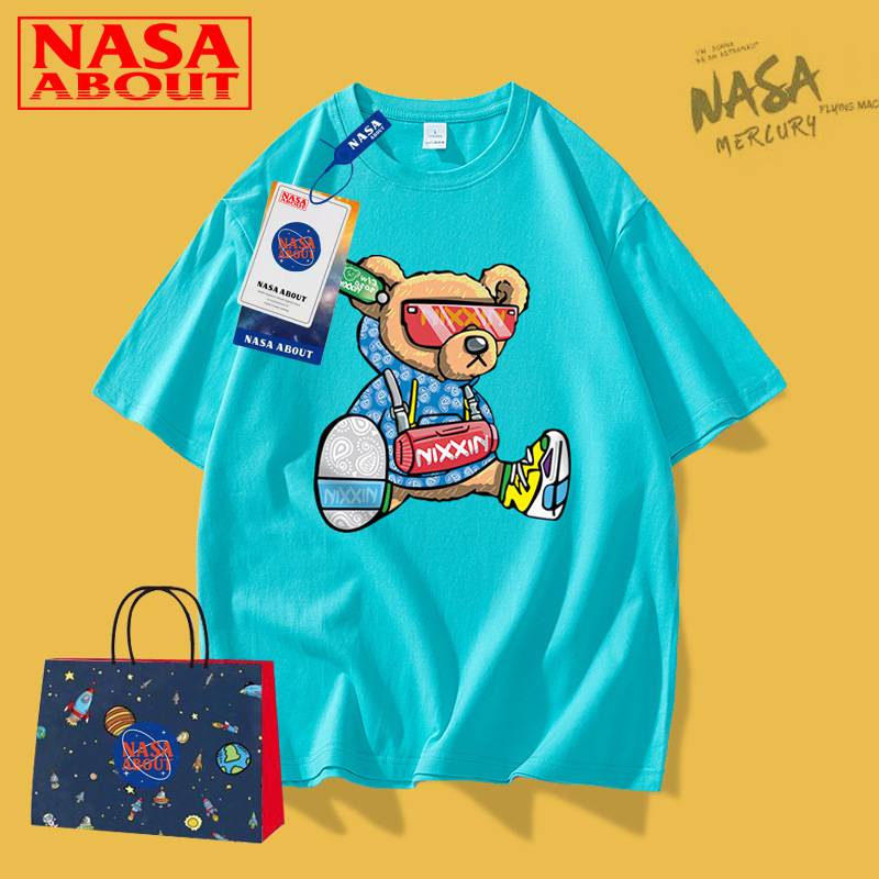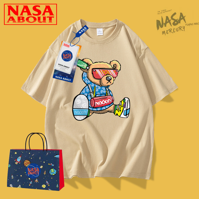 NASA联名新品卡通年夏季纯棉短袖t恤男女潮牌上衣情侣装T恤男