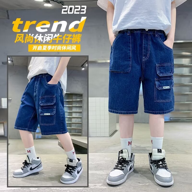 童装潮牌牛仔裤男童夏季美式高街薄款直筒裤子中大童五分短裤