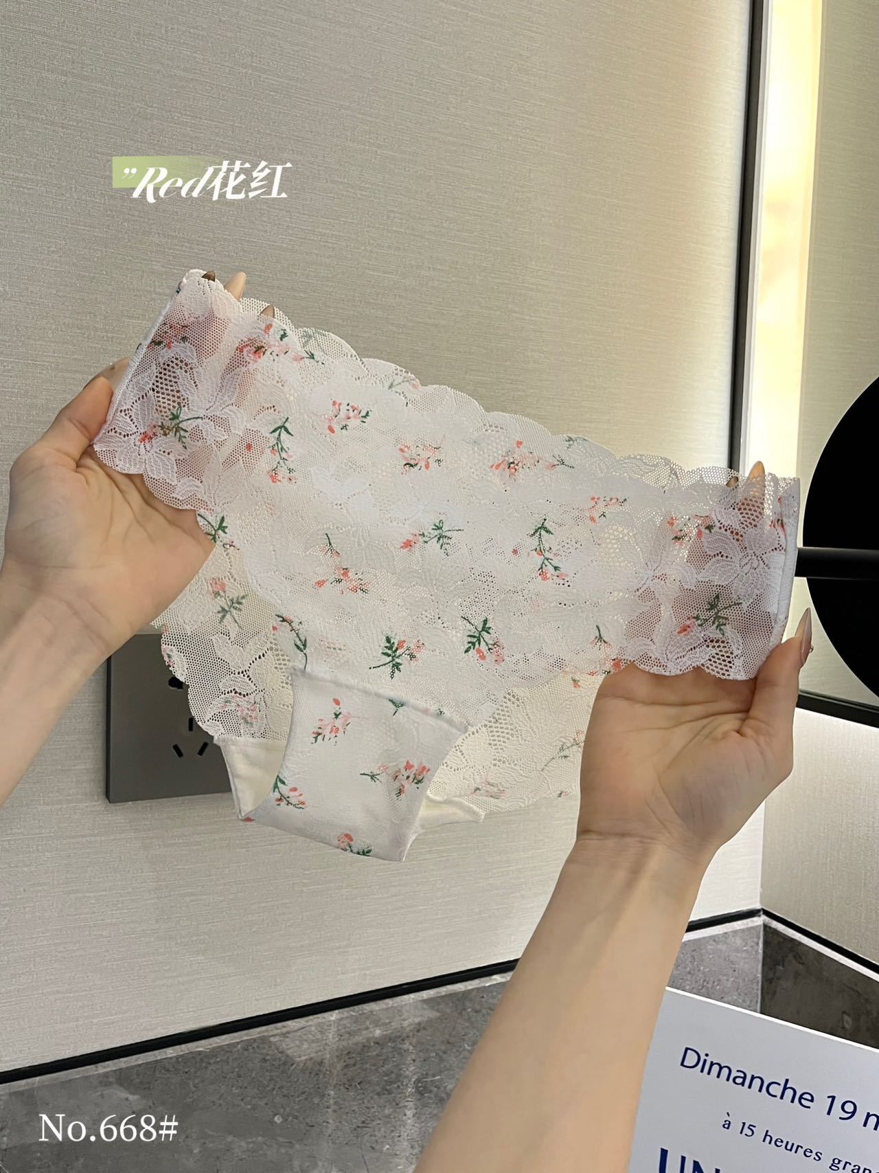 浪漫纯欲小碎花蕾丝少女中腰薄款速干透气无痕一体轻柔内裤