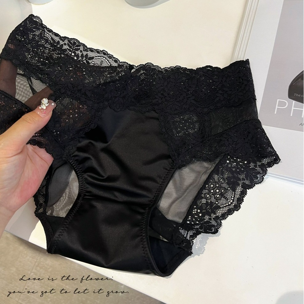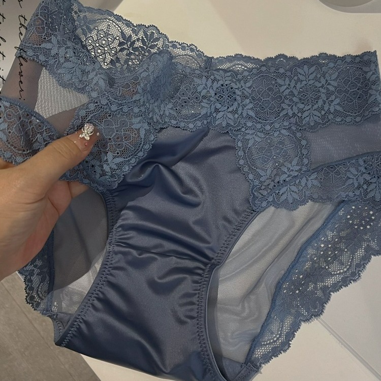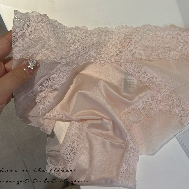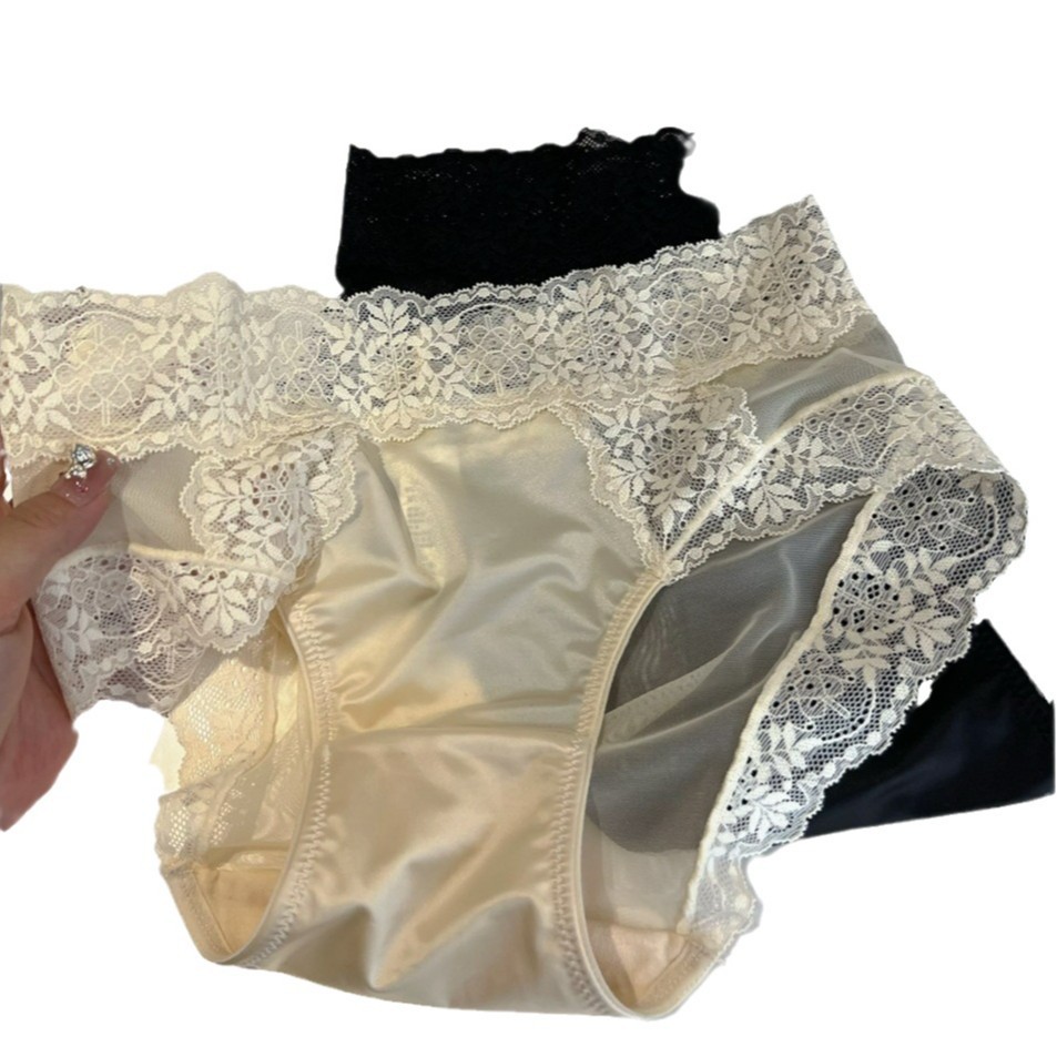 法式缎面高级~中腰奶油蕾丝内裤女士性感纯欲棉档少女纯色三角裤