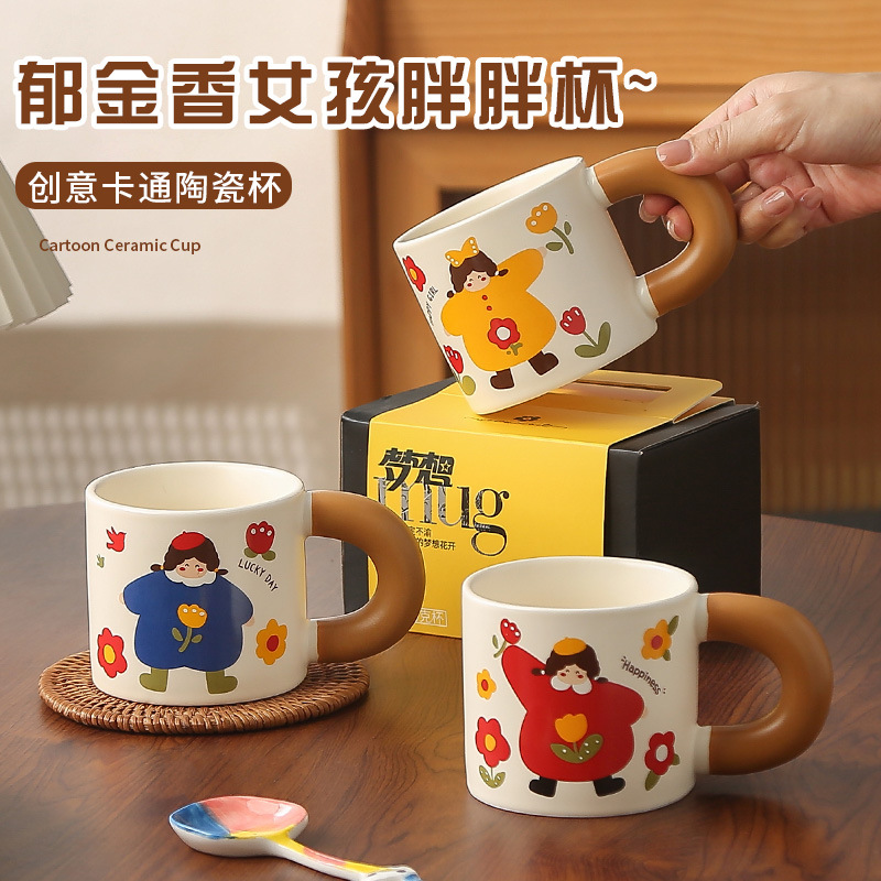 郁金香女孩马克杯可爱童趣牛奶杯公司活动礼品陶瓷胖胖杯礼盒