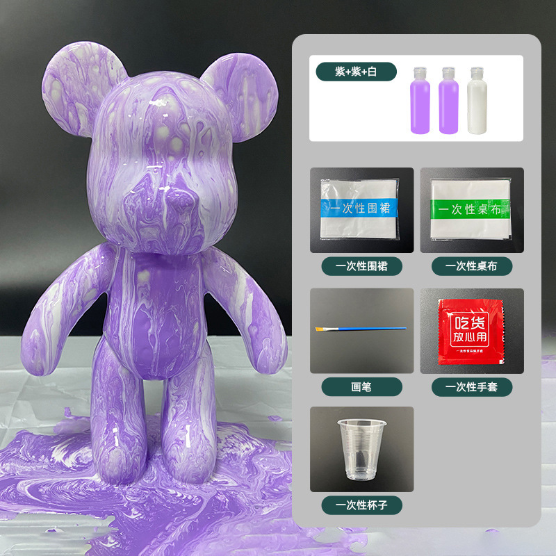 流体熊白胚颜料涂绘贴钻手工流体熊地摊流体暴力熊