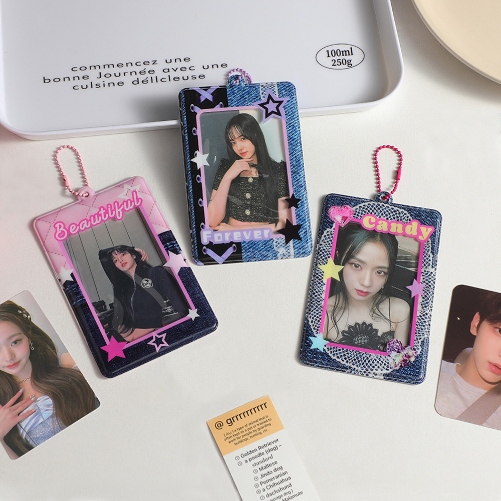 复古牛仔系列PVC卡套追星专辑卡展示卡包学生证件照收纳背包挂件