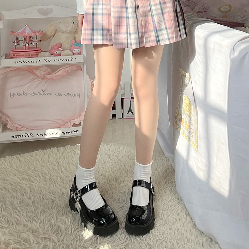 法式复古银色单鞋女粗跟春秋方头浅口一字带扣玛丽珍鞋