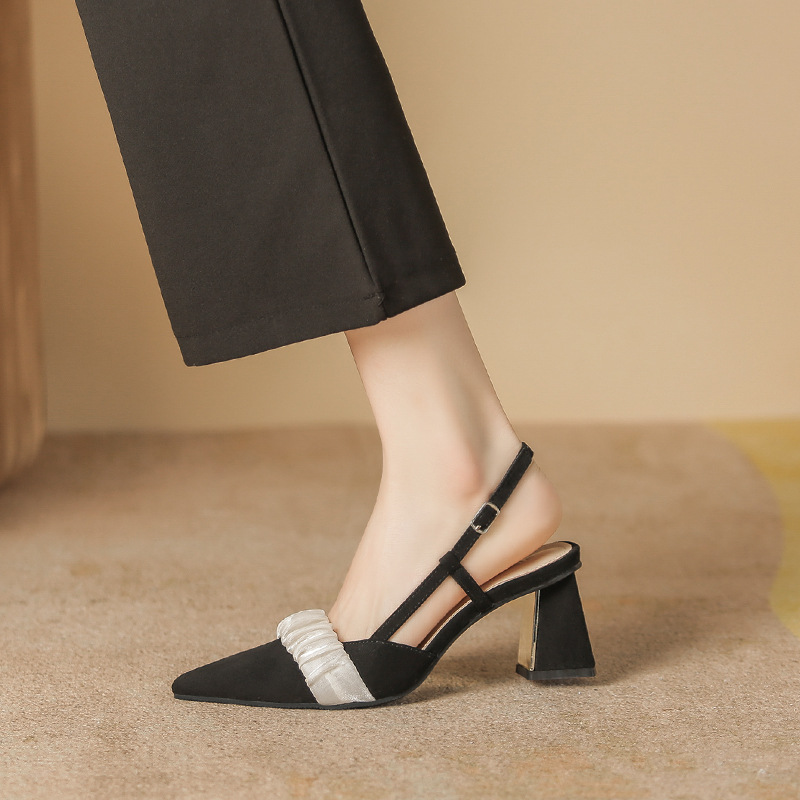 凉鞋女夏季新款法式气质尖头浅口黑色高级感高跟包头凉鞋女
