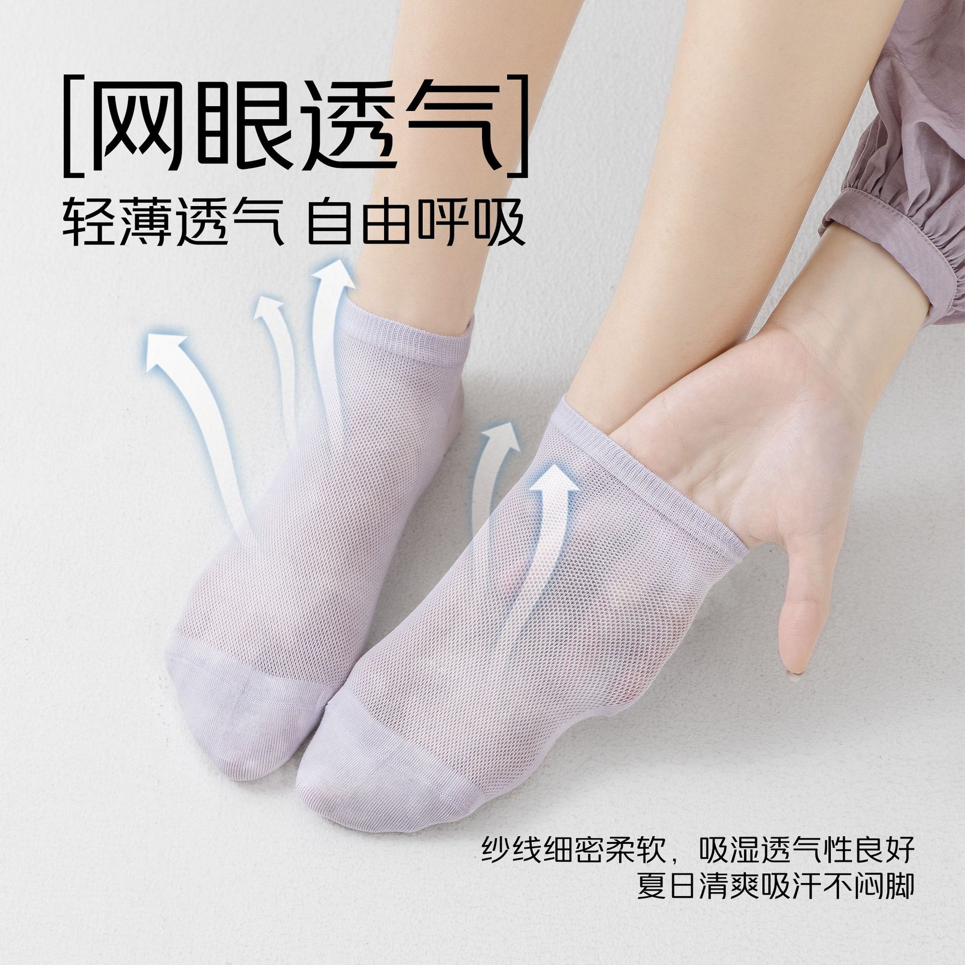 袜子女春夏季抗起球棉袜日系网纱短筒休闲袜男士透气船袜
