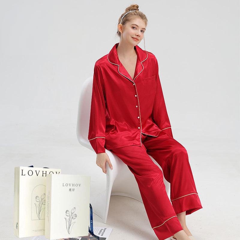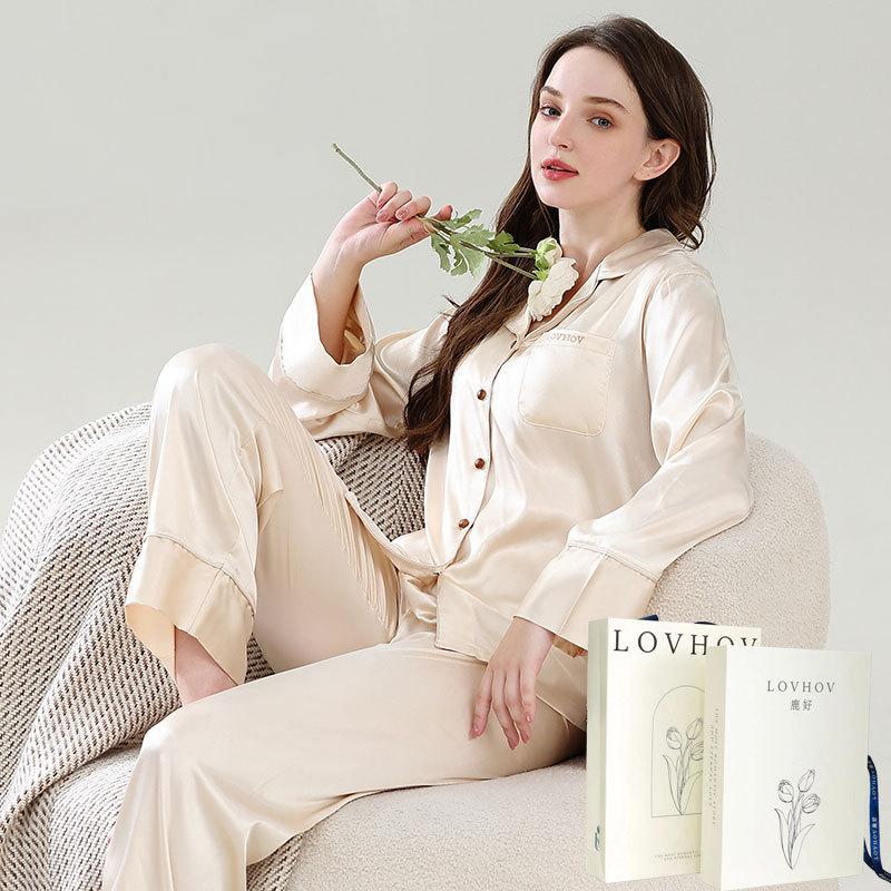 睡衣女春夏款长袖开衫女士家居服礼盒装