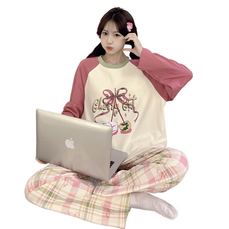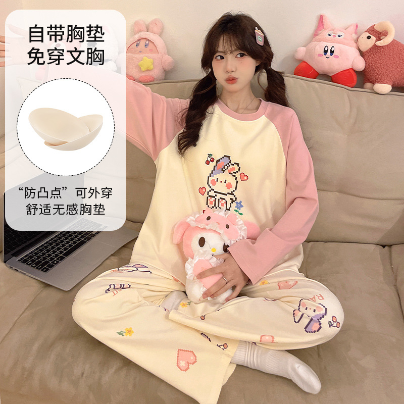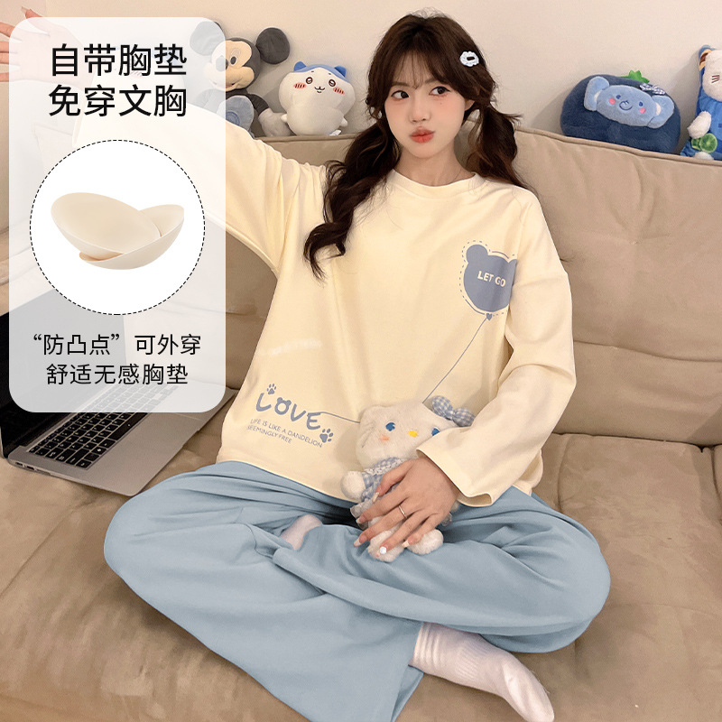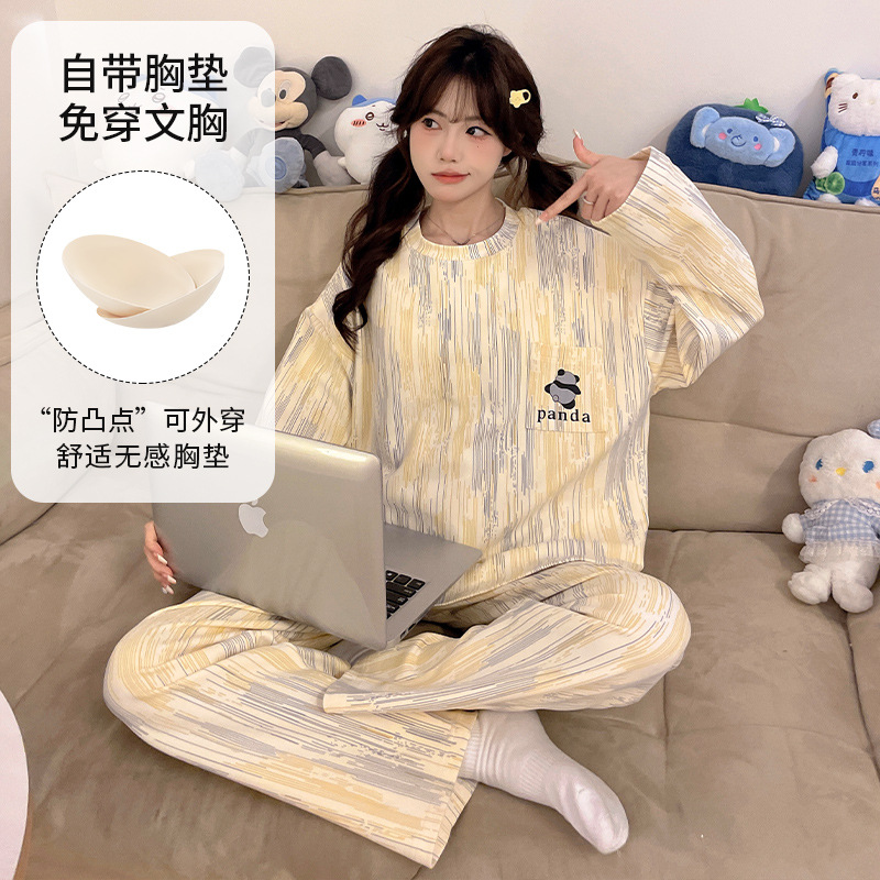 春秋款睡衣女士长袖新款带胸垫防凸点家居服可外穿套装