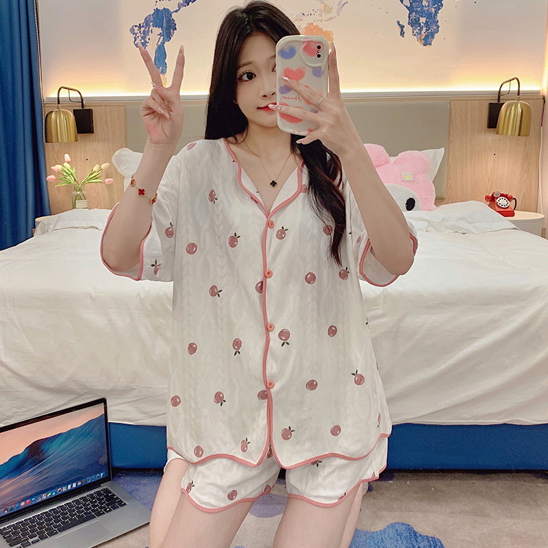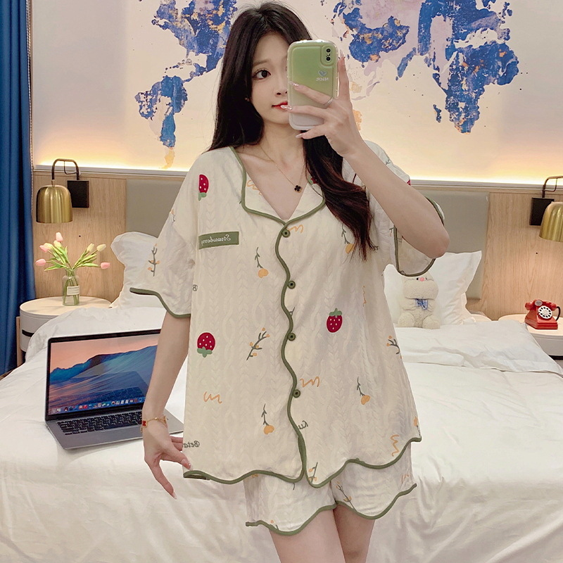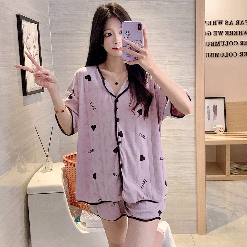 春季睡衣女短袖带胸垫套装宽松甜美可爱卡通女士家居服夏