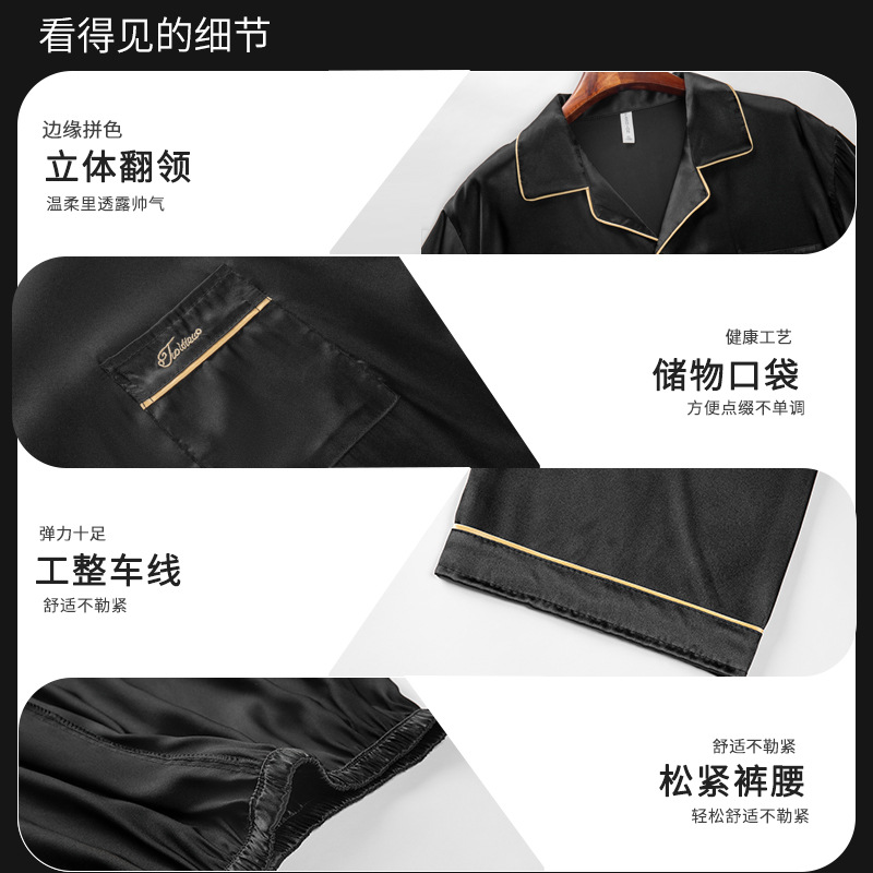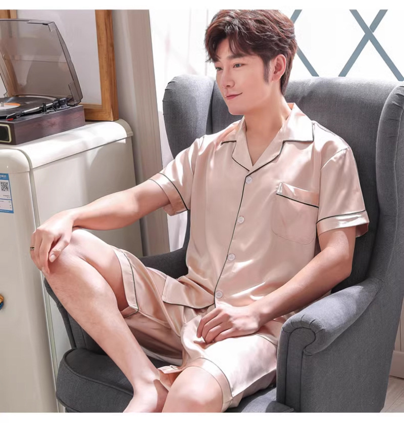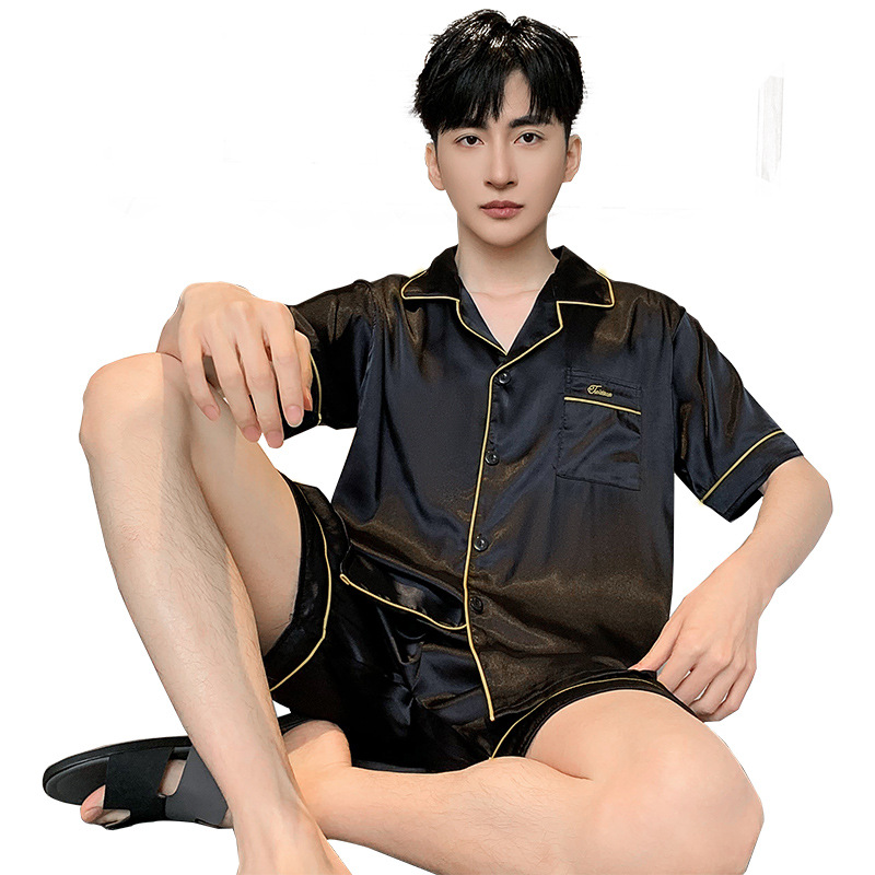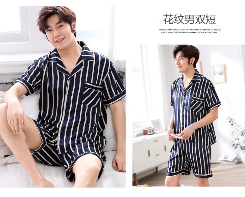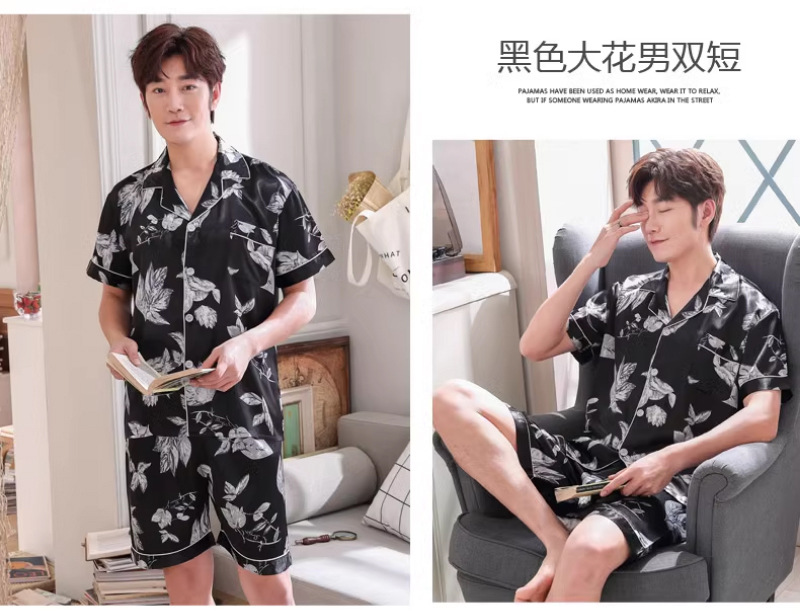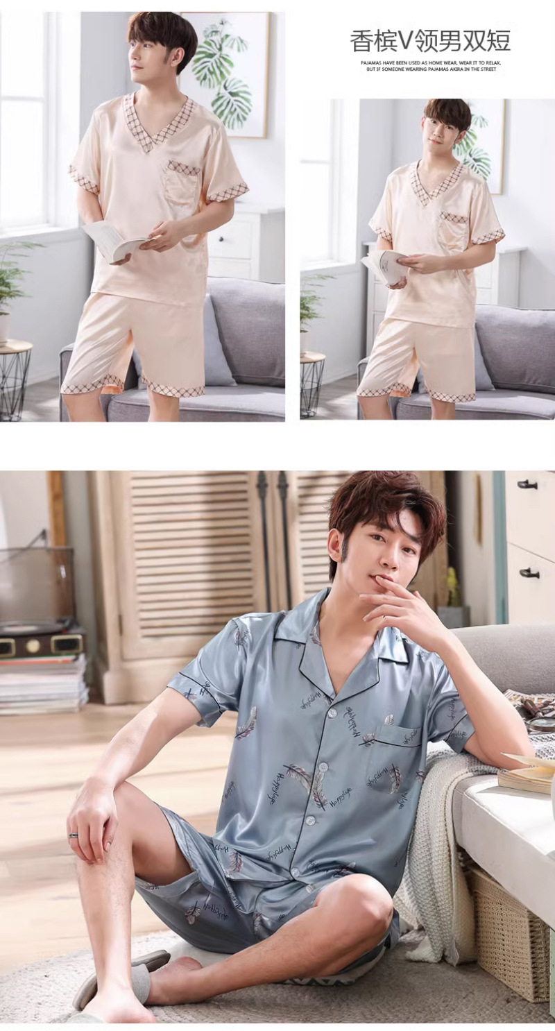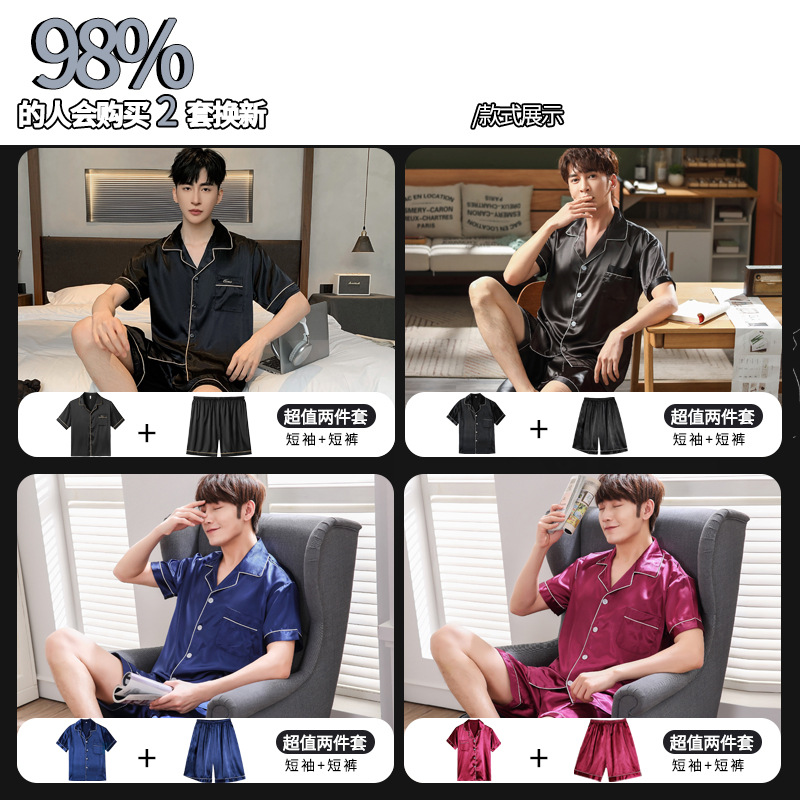睡衣男士夏季夏天冰丝短袖短裤丝绸家居服夏款男款仿真丝薄款套装