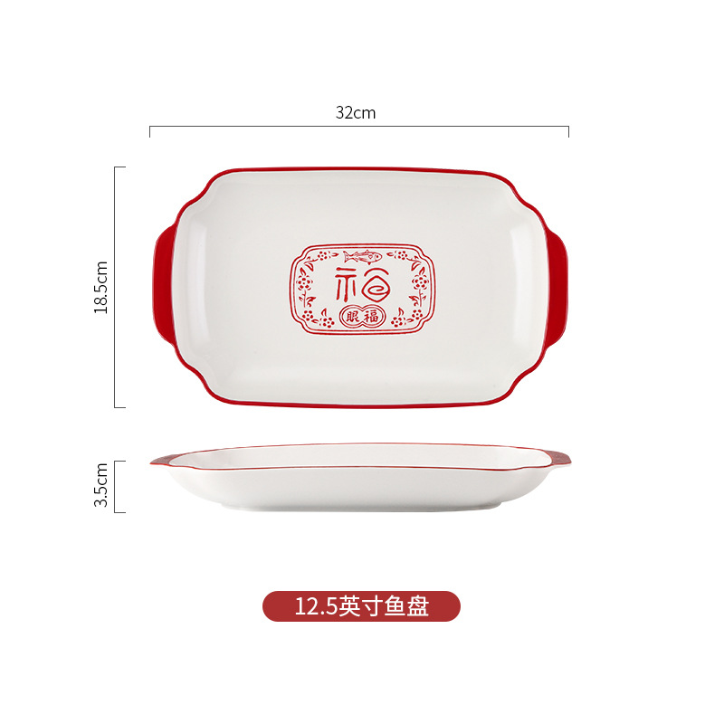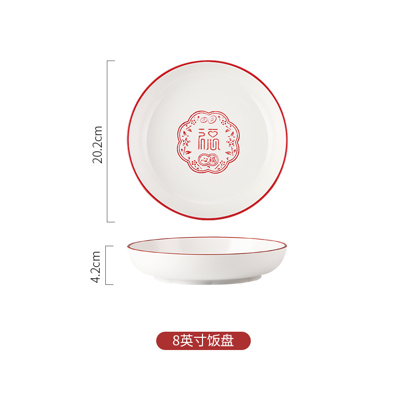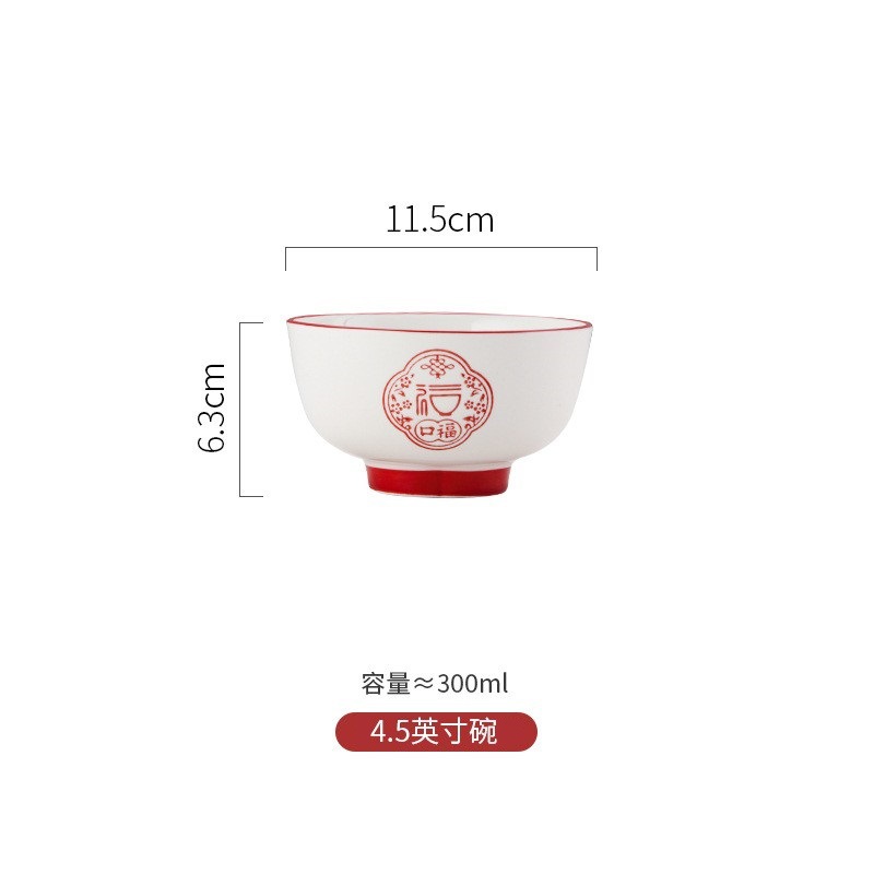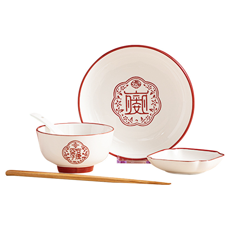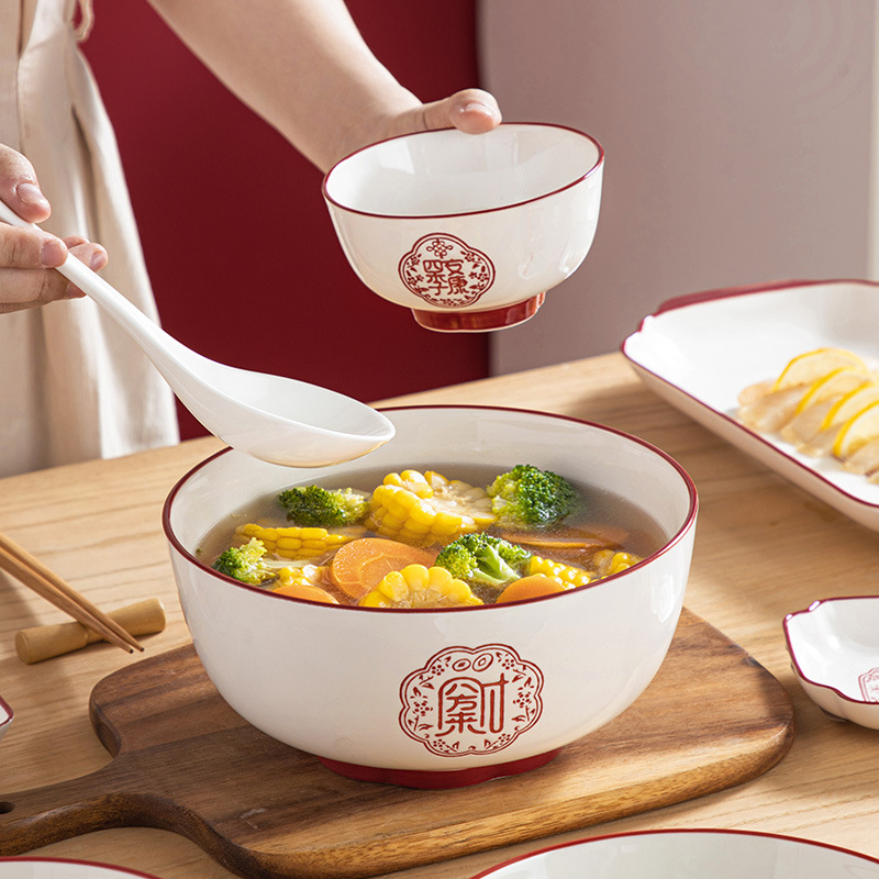 新中式餐具陶瓷米饭碗汤面碗五福临门家用个性餐具碗盘套装