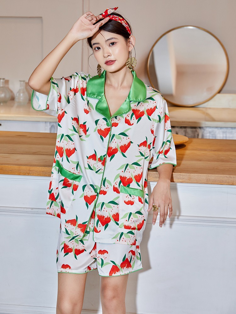 夏天草莓庄园高级感冰丝印花短袖女士睡衣可外穿家居服