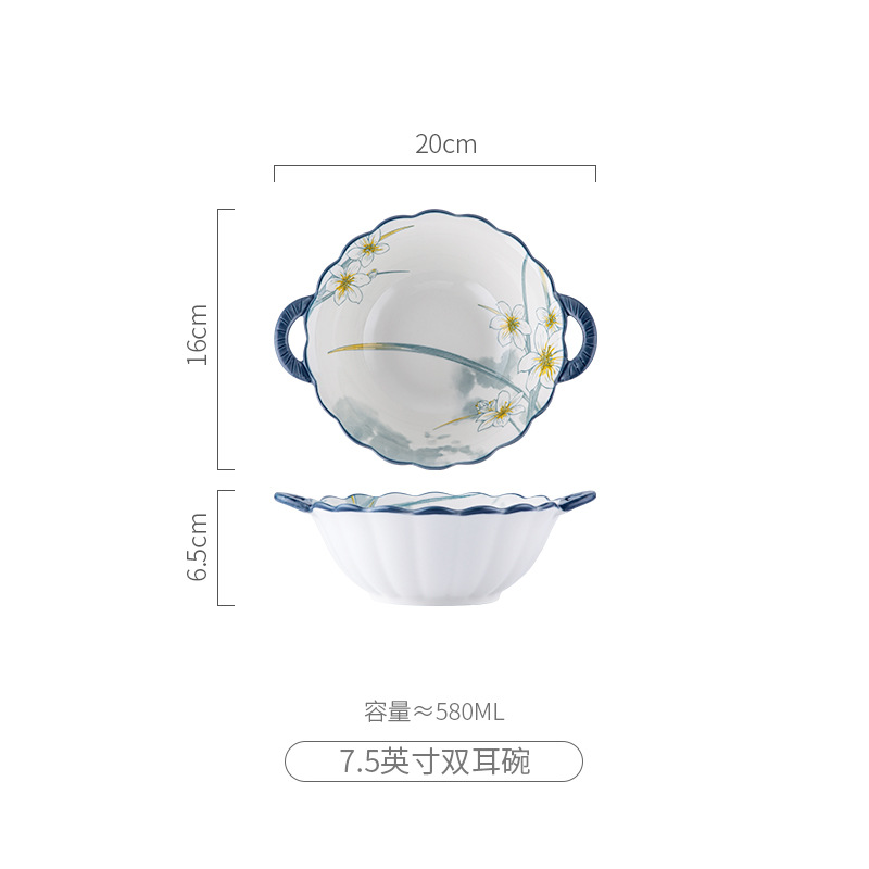 - 水仙花-7.5寸双耳花边汤碗(48)