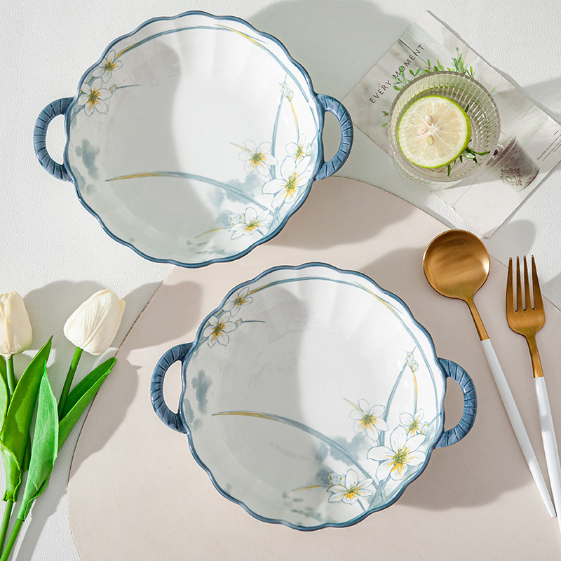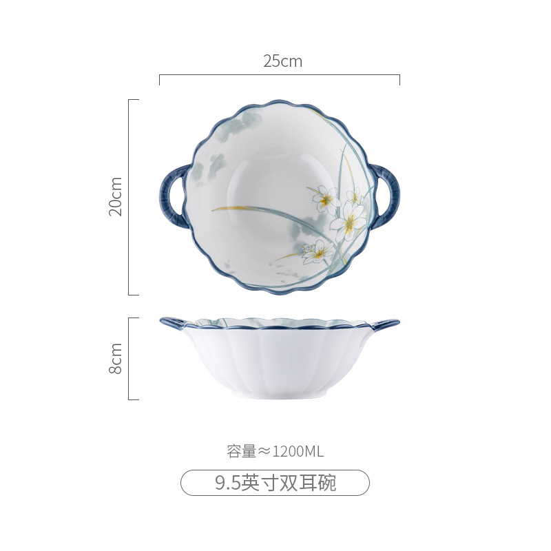 - 水仙花-9.5寸双耳花边汤碗(36)