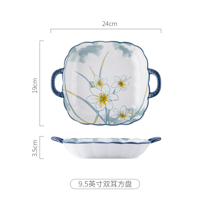 - 水仙花-8.5寸双耳花边方盘(48)