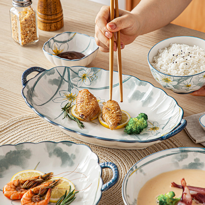 新中式陶瓷碗家用新款创意盘子碗盘单个碗带手柄高颜值米饭碗