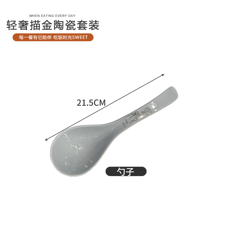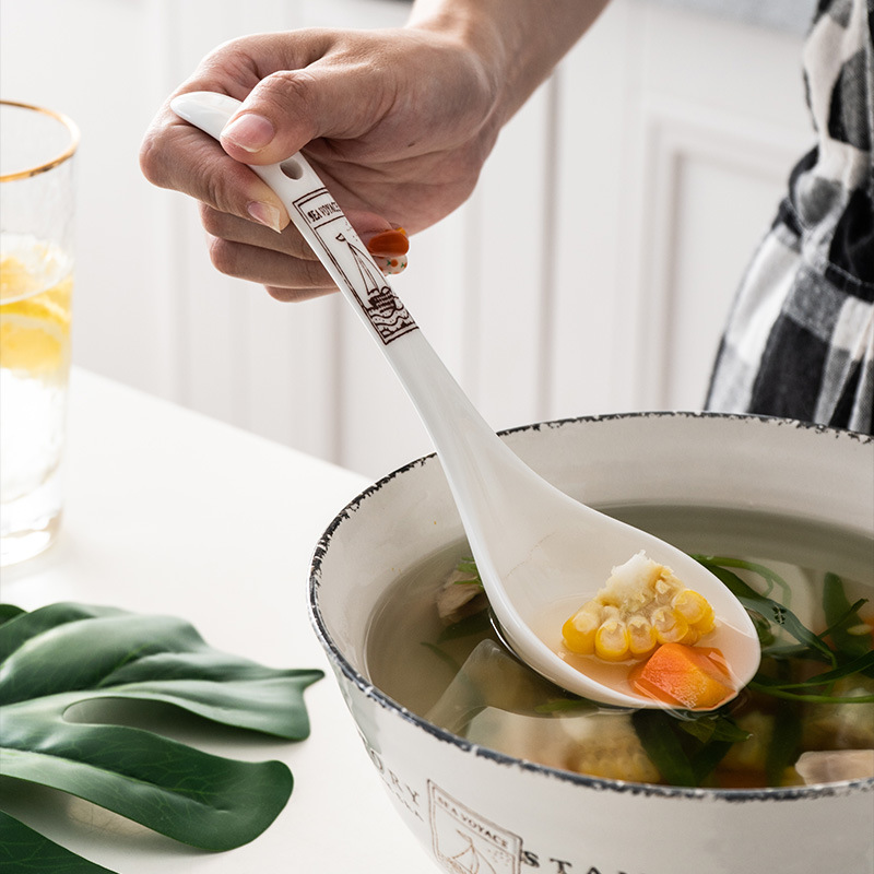 名流陶瓷勺子中式家用大汤勺调羹长柄汤匙简约加厚创意中国风