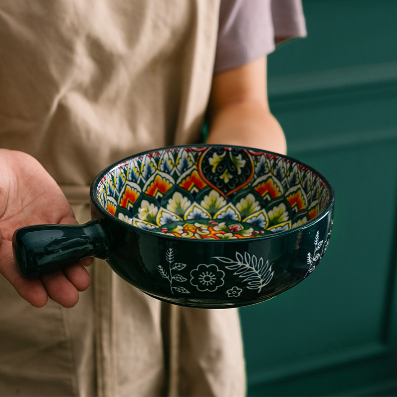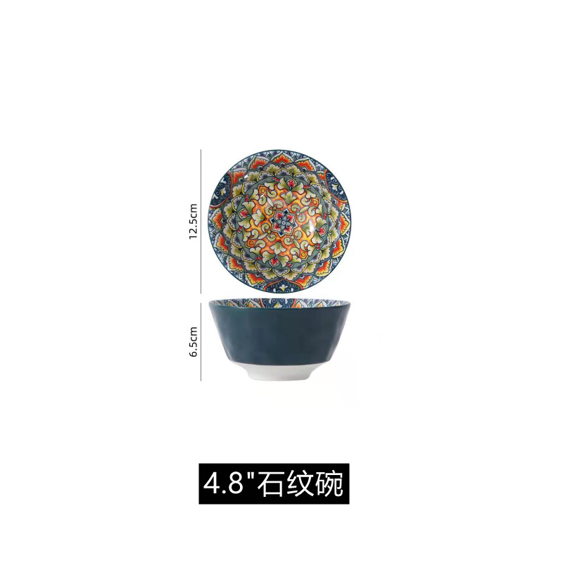 外贸欧式波西米亚陶瓷碗家用盘子泡面碗餐具创意个性碗碟套装