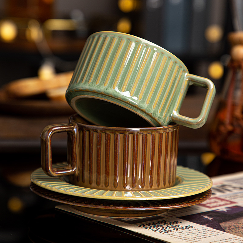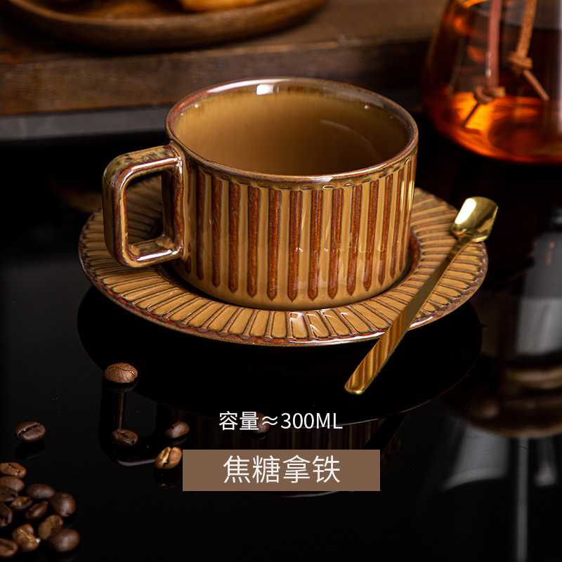 教师节礼品外贸咖啡杯高档精致窑变复古水杯子陶瓷杯碟套装下午茶