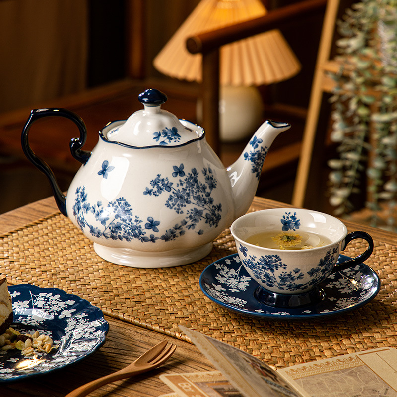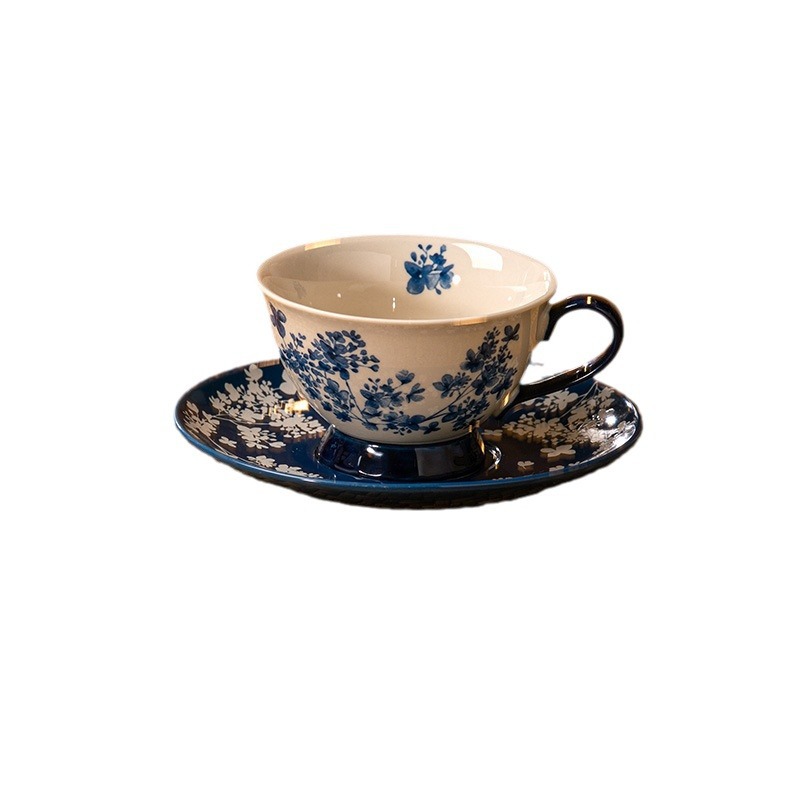 迦蓝陶瓷复古咖啡杯碟中国风青花瓷教师节礼物精致好看的陶瓷杯子