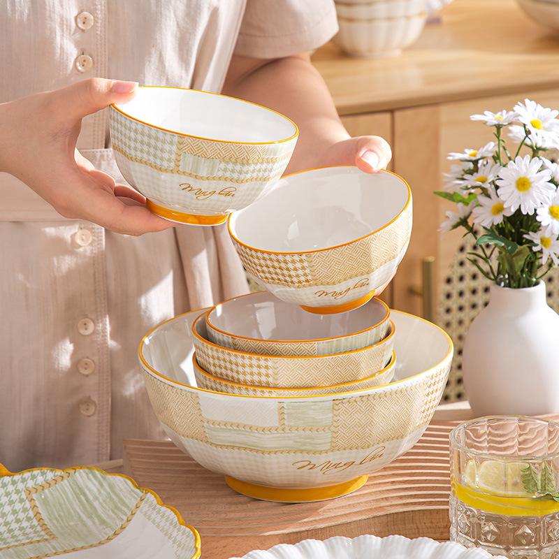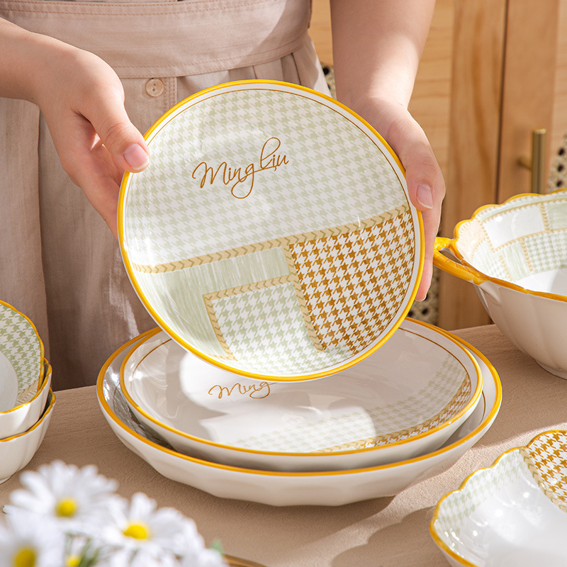 名流釉下彩陶瓷碗碟套装家用碗盘新中式新居新款饭碗菜盘子餐具