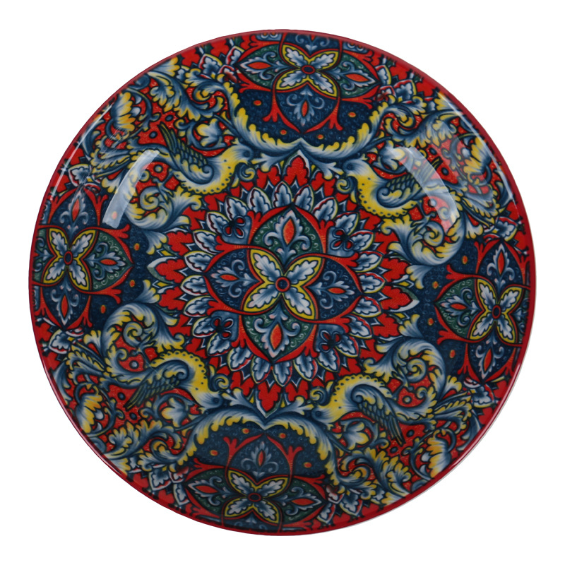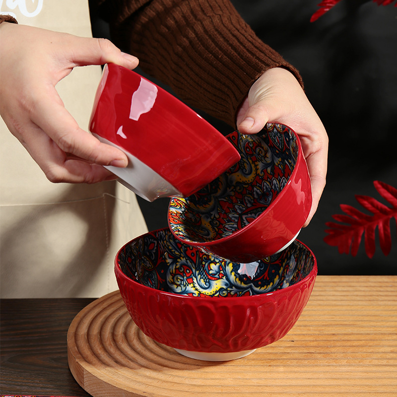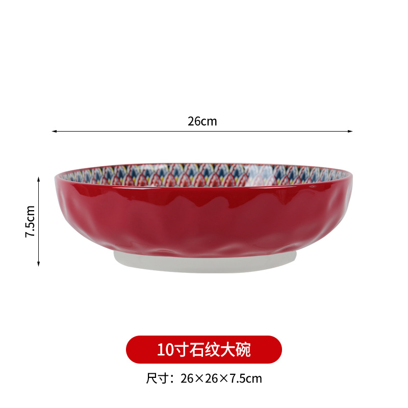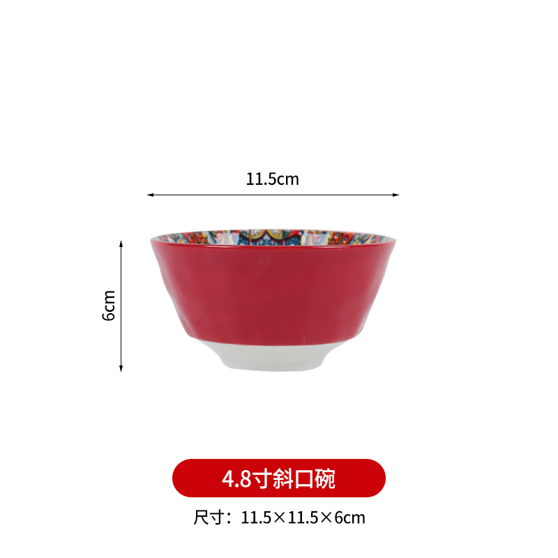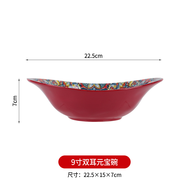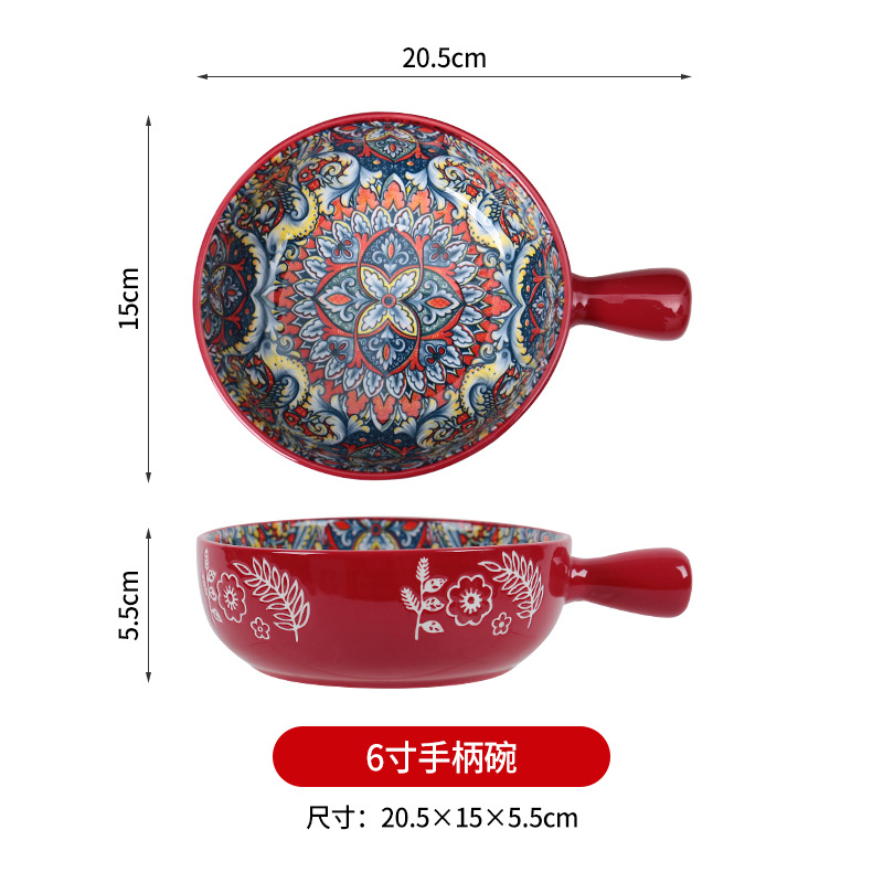 波西米亚风碗碟双耳正方盘高颜值釉下彩陶瓷餐具套装碗碟盘