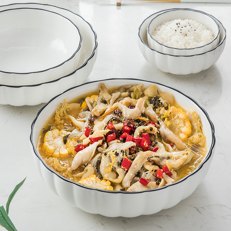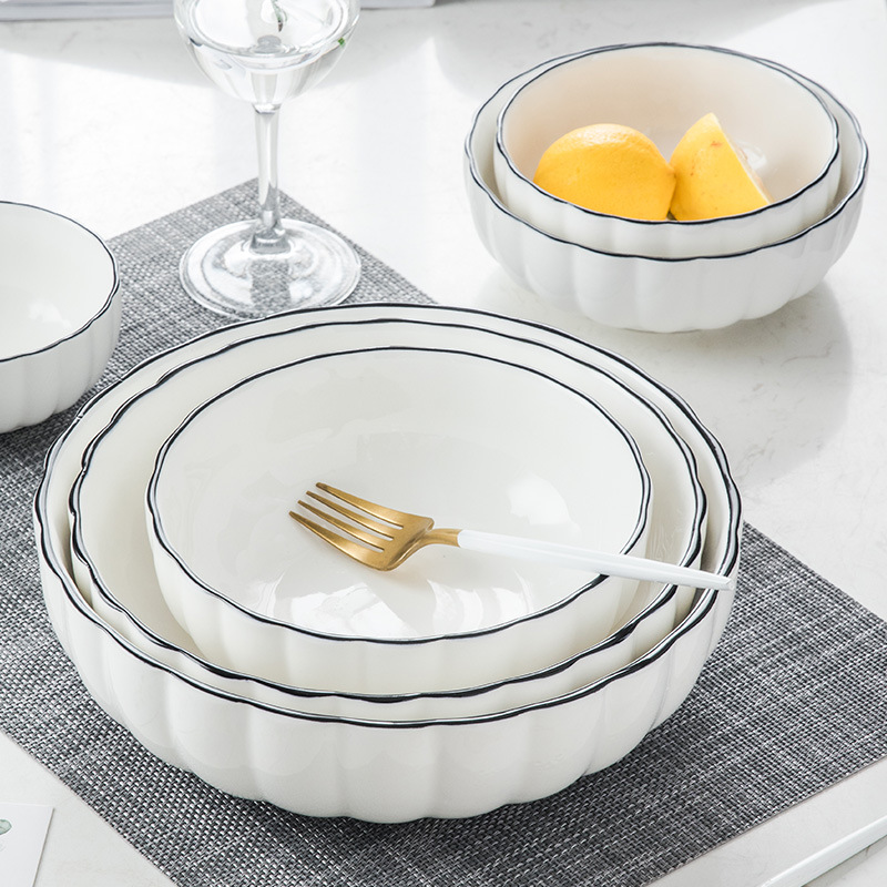 陶瓷碗筷套装网红日韩创意小清新南瓜碗黑线餐具碗碟盘酸菜鱼大碗