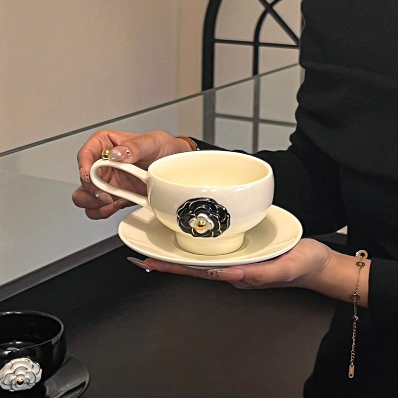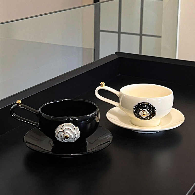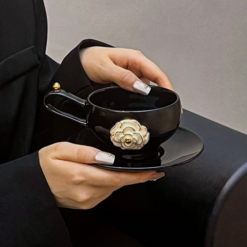 轻奢风下午茶马克杯高颜值描金伴手礼情侣办公杯咖啡杯碟带礼盒