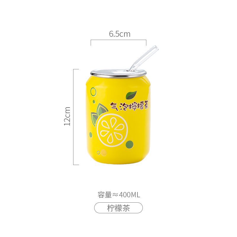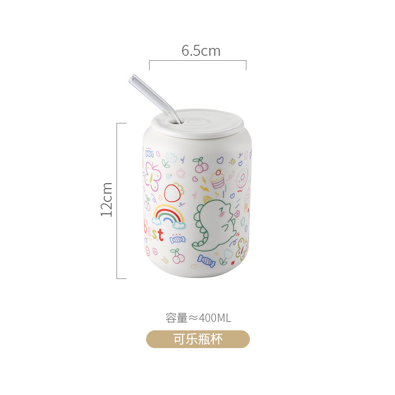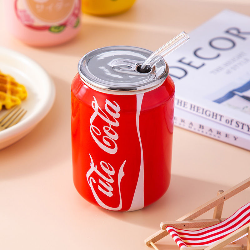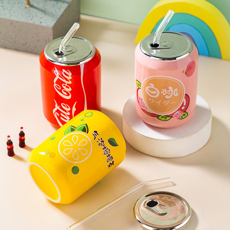 网红易拉罐吸管杯子陶瓷水杯可乐创意高颜值女生可爱果汁杯送礼物