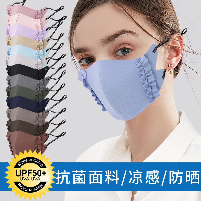 冰丝木耳边立体英文带可调节口罩防晒透气薄款面罩
