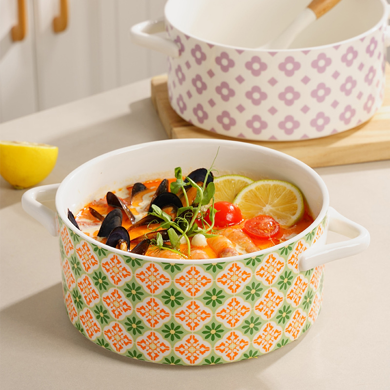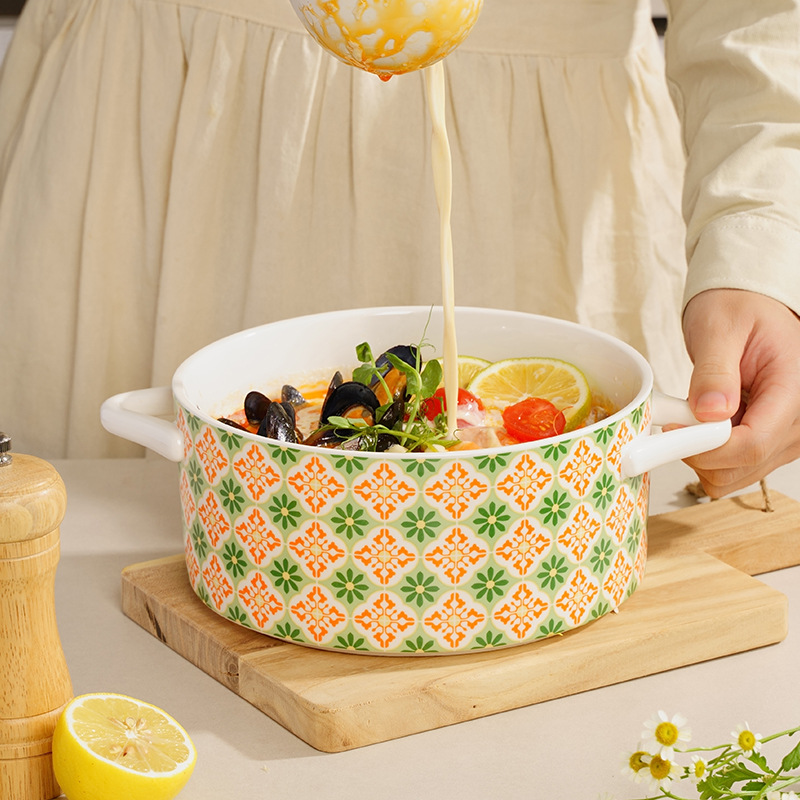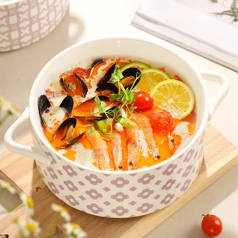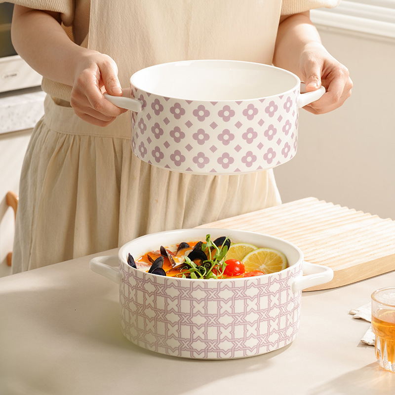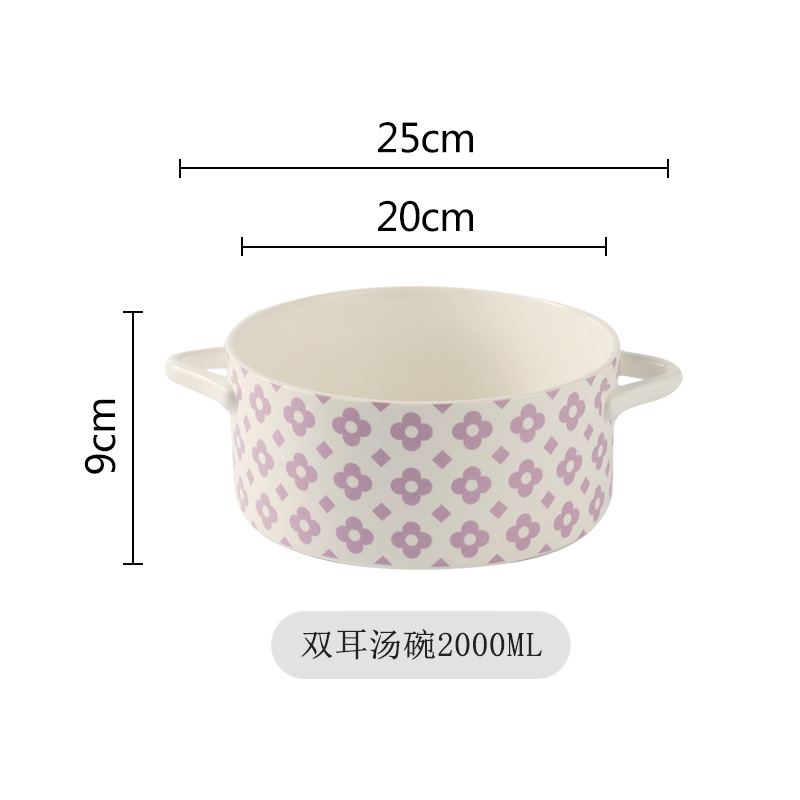 双耳汤碗大号家用日式吃面碗10英寸大容量盛汤大碗陶瓷汤盆
