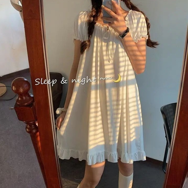 甜美公主风睡衣裙子女夏季睡裙宽松中长款胖MM可穿家居服