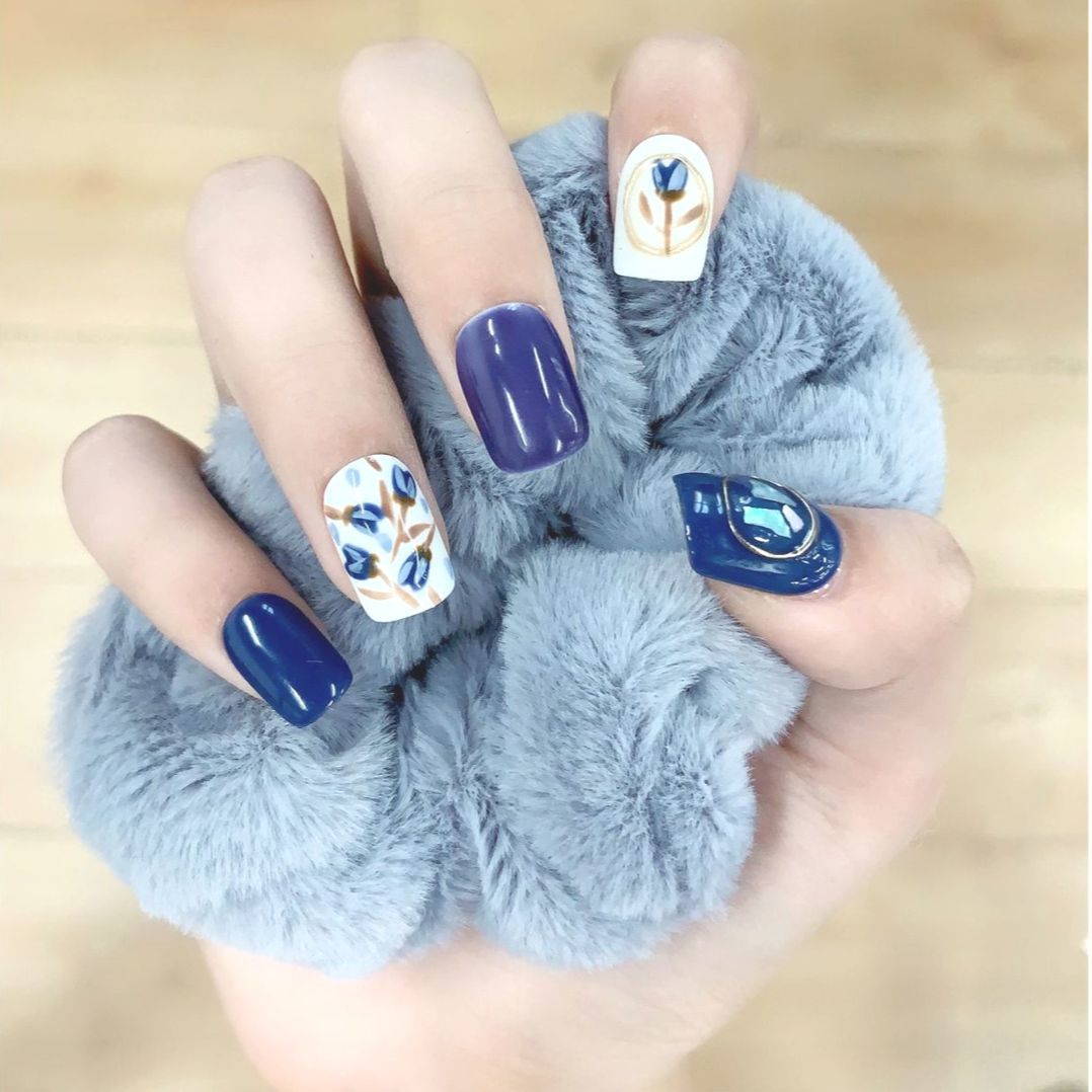 纯手工穿戴甲片美甲指甲贴片手绘花朵极光青花瓷古风雅