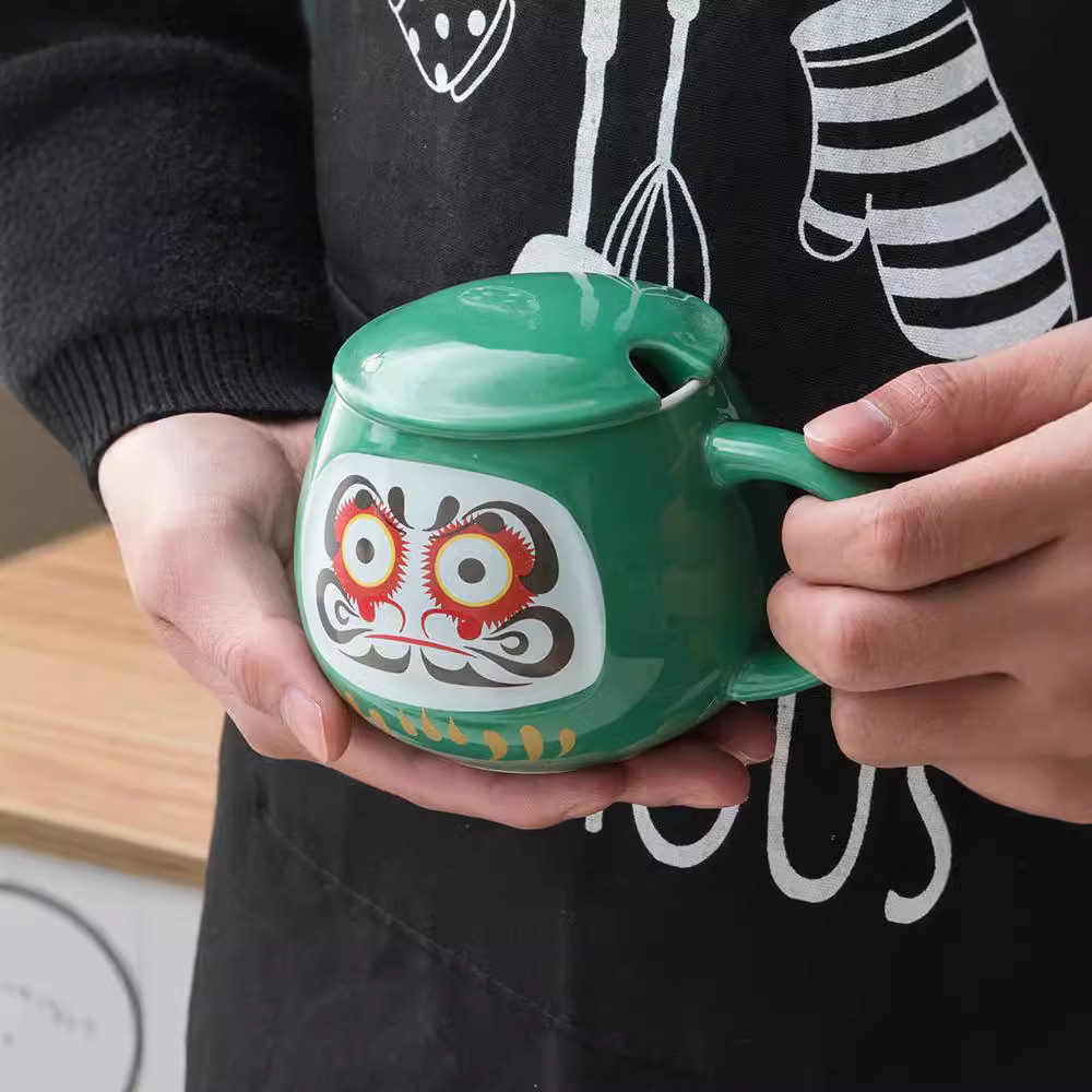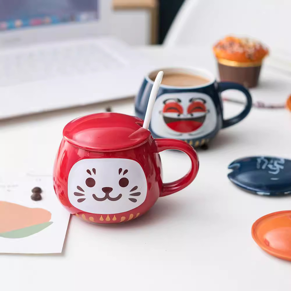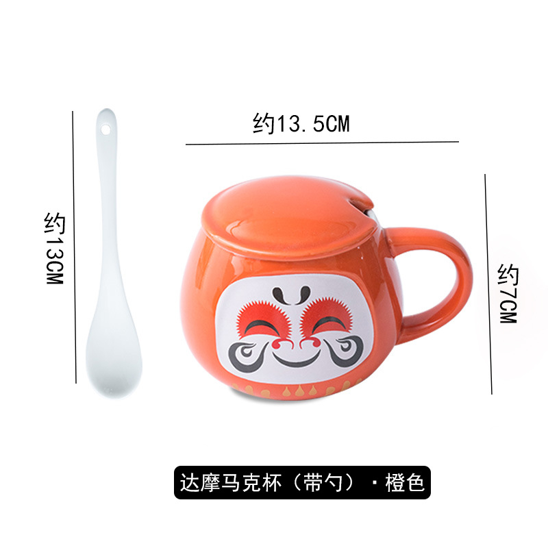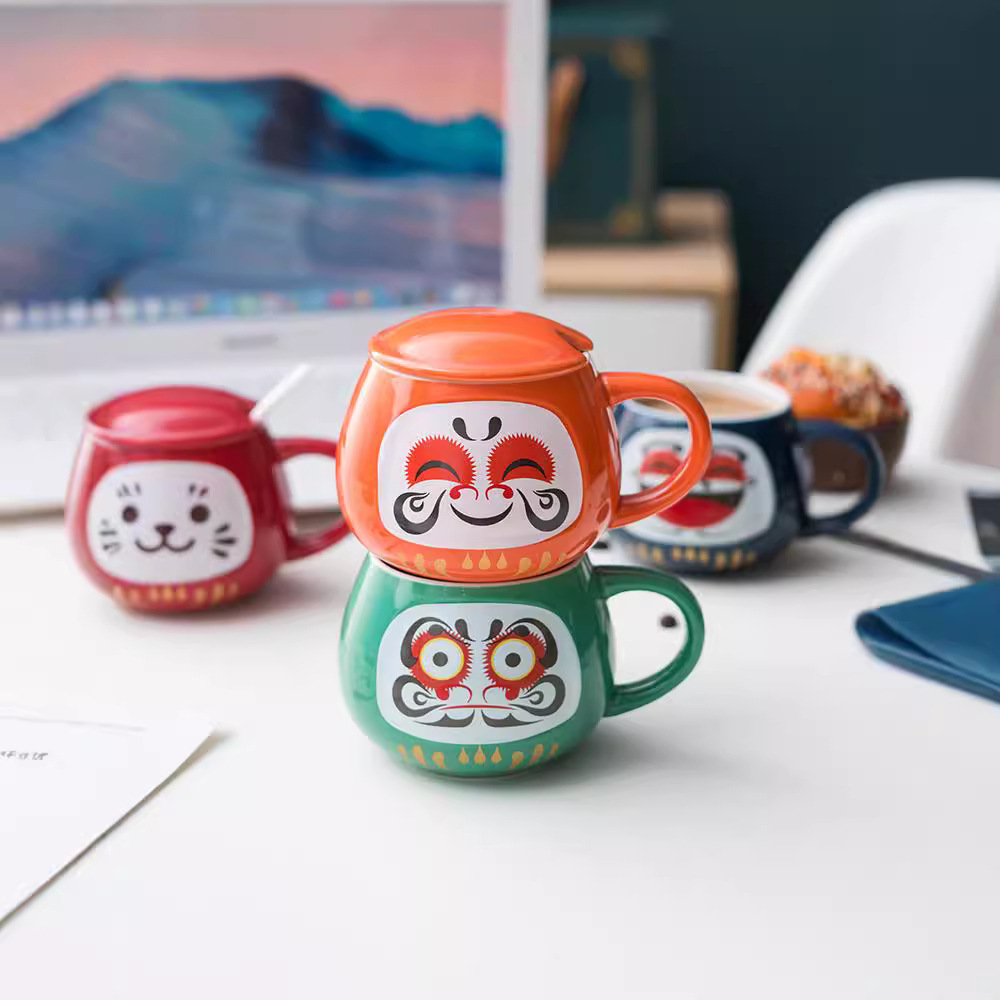中国风脸谱陶瓷马克杯带盖带勺家用卡通可爱水杯喝水情侣杯咖啡杯
