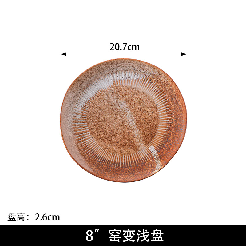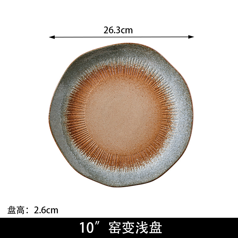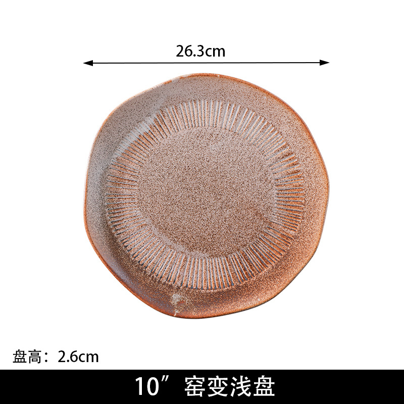 窑变牛排盘轻奢复古北欧风日式浅盘浮雕高颜值陶瓷餐盘子