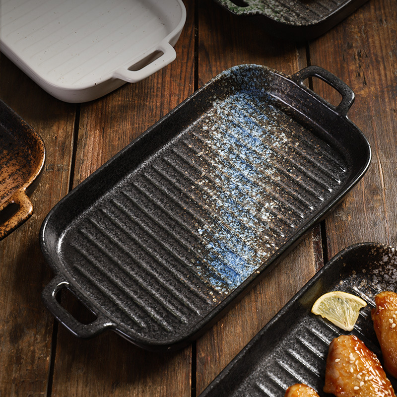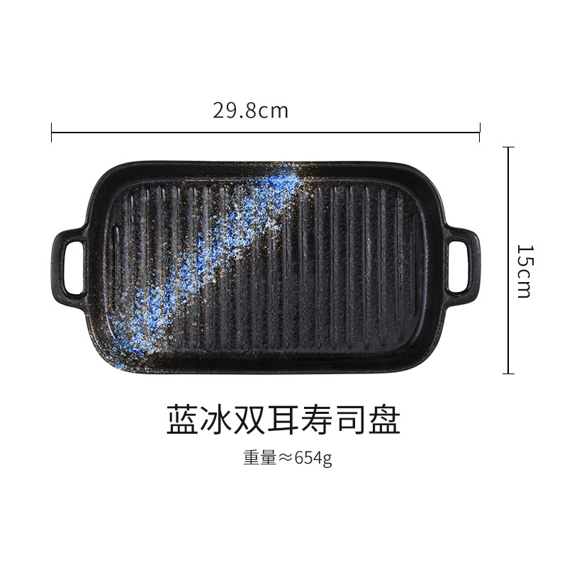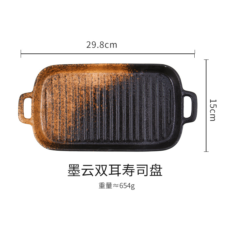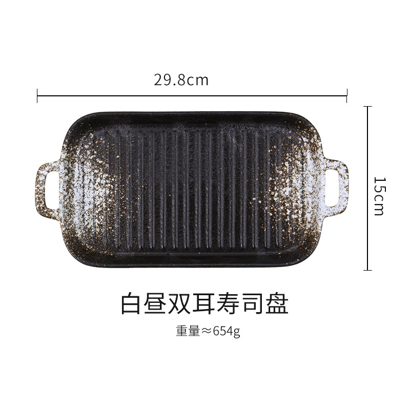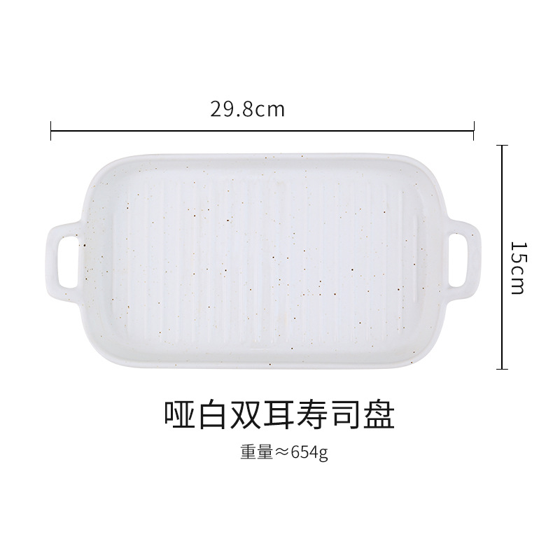 陶瓷双耳盘日式寿司意面家用菜盘商用餐具创意长方水果沙拉盘