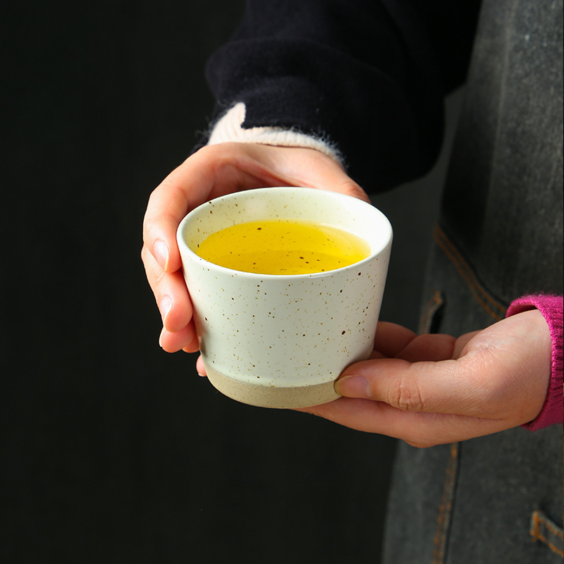 跨境 日式粗陶茶杯跨境陶瓷简约品茗杯精致手工杯斗笠燕麦宽口杯