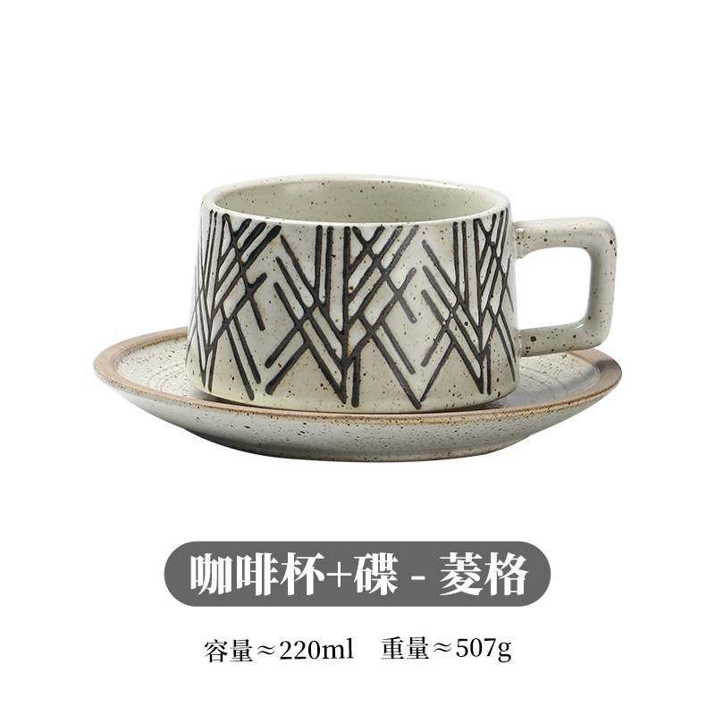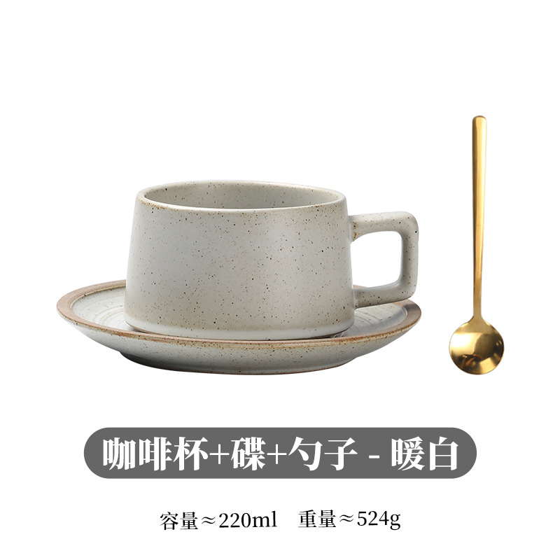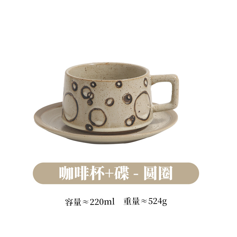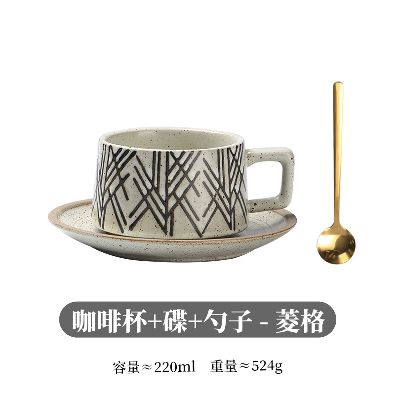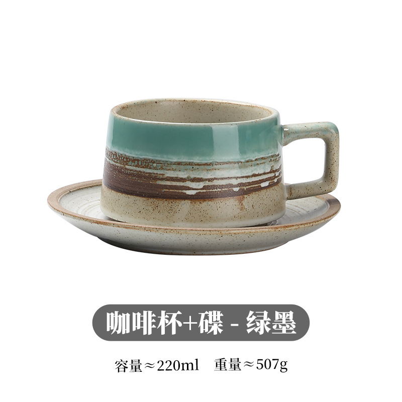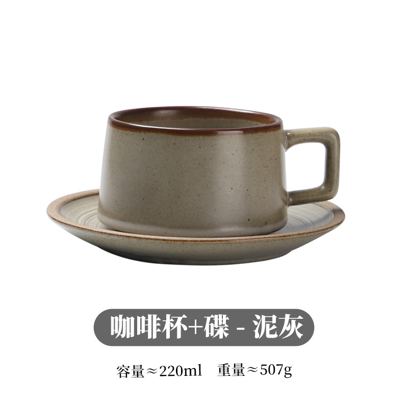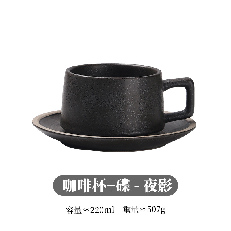 跨境陶瓷咖啡杯套装商用日式陶瓷杯高档奶茶店杯复古粗陶杯碟
