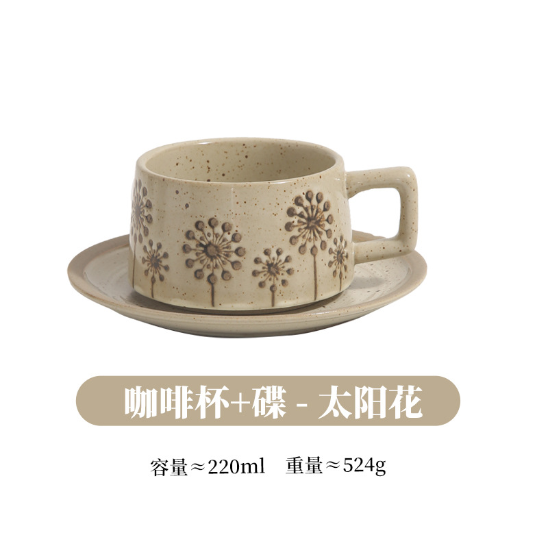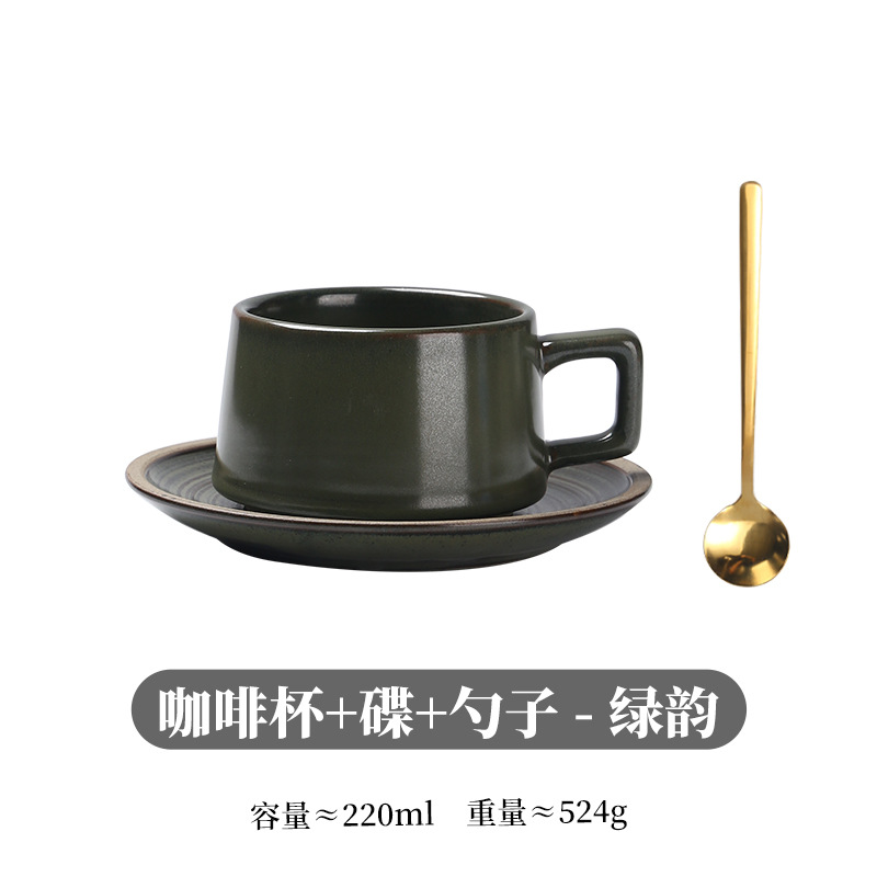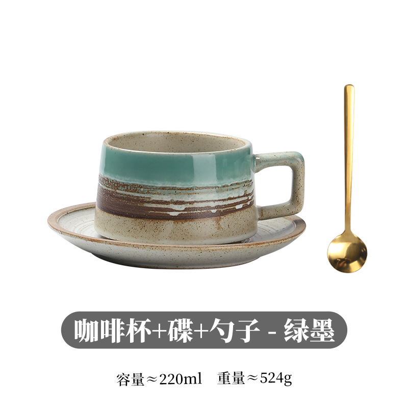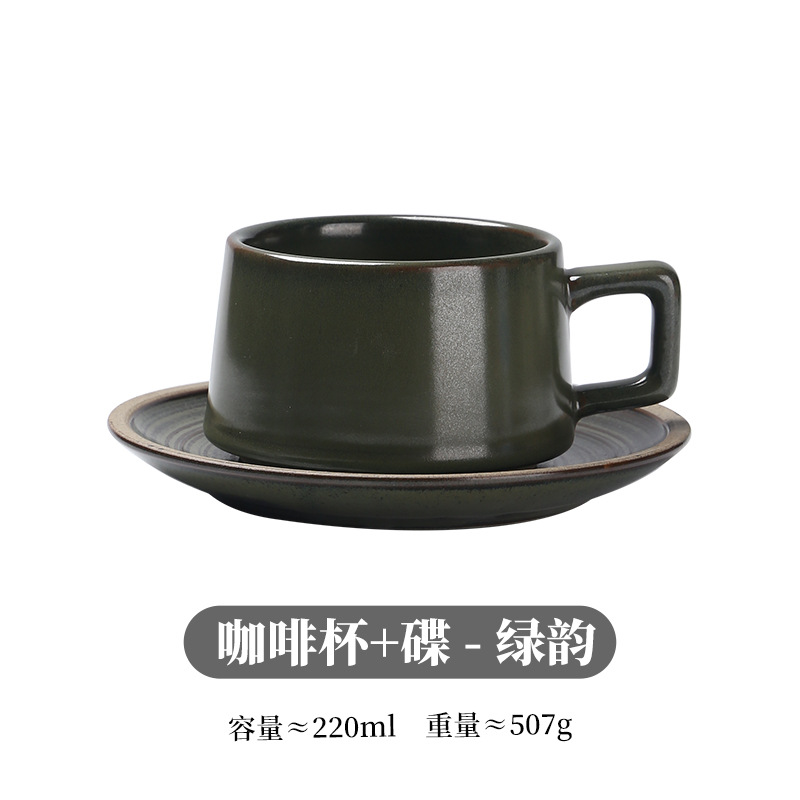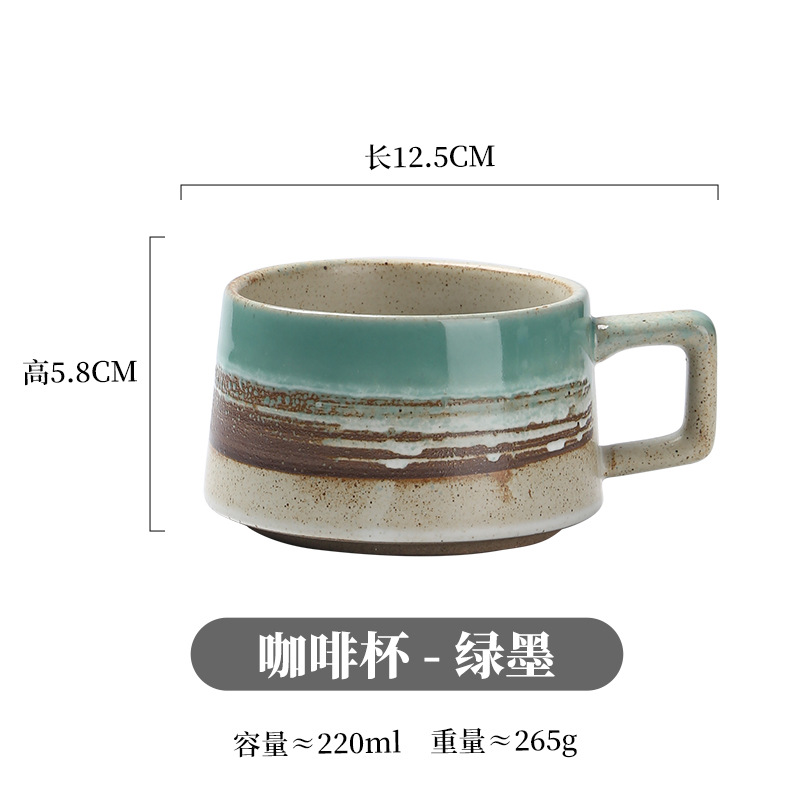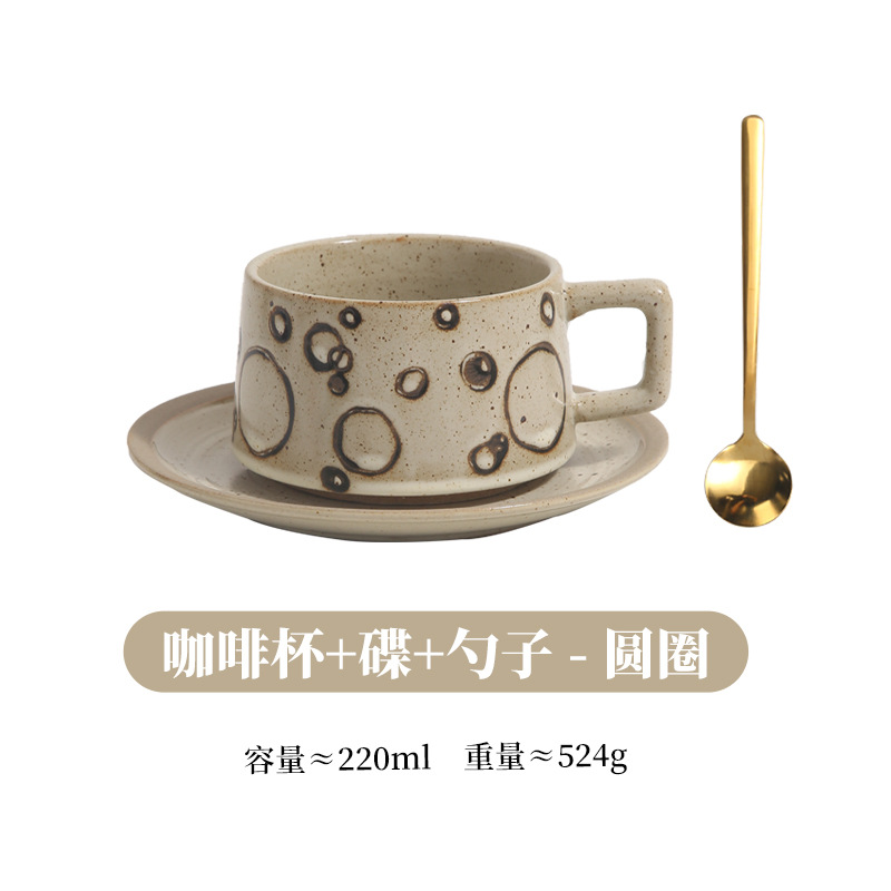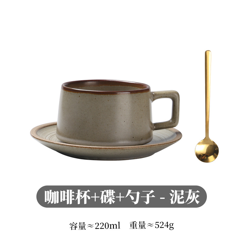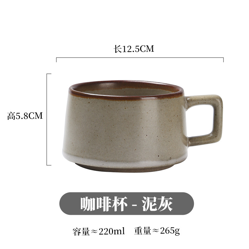 跨境陶瓷咖啡杯套装商用日式陶瓷杯高档奶茶店杯复古粗陶杯碟