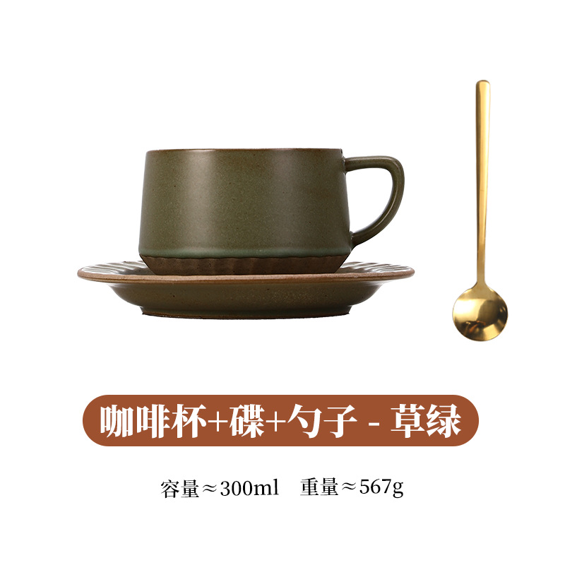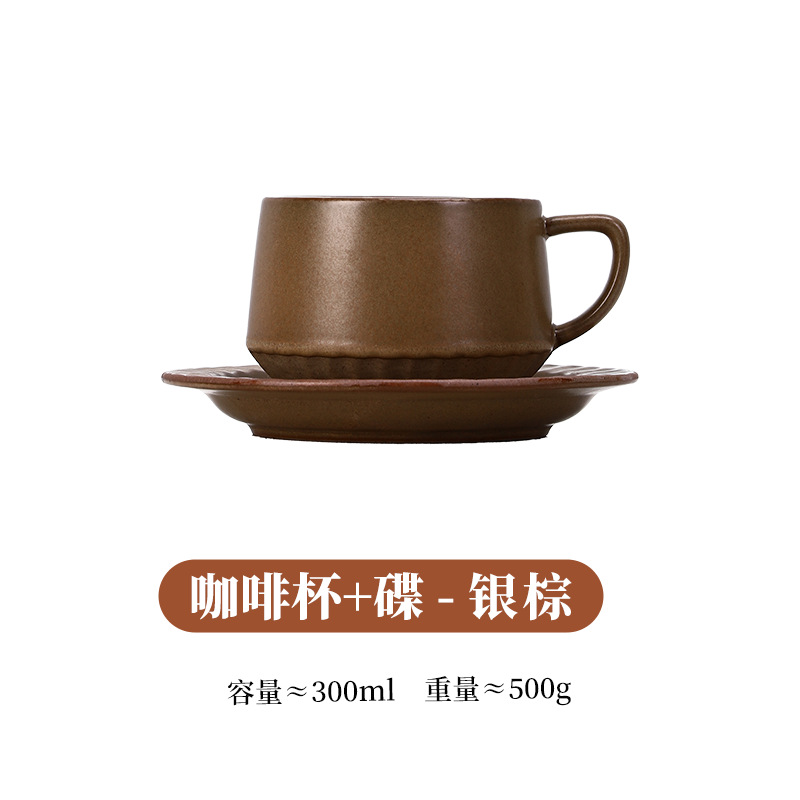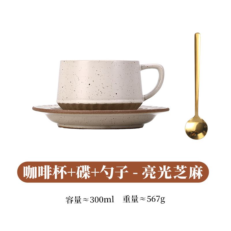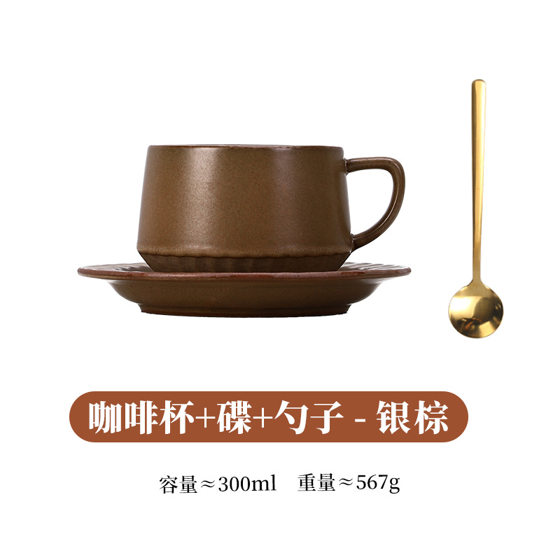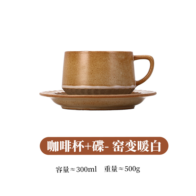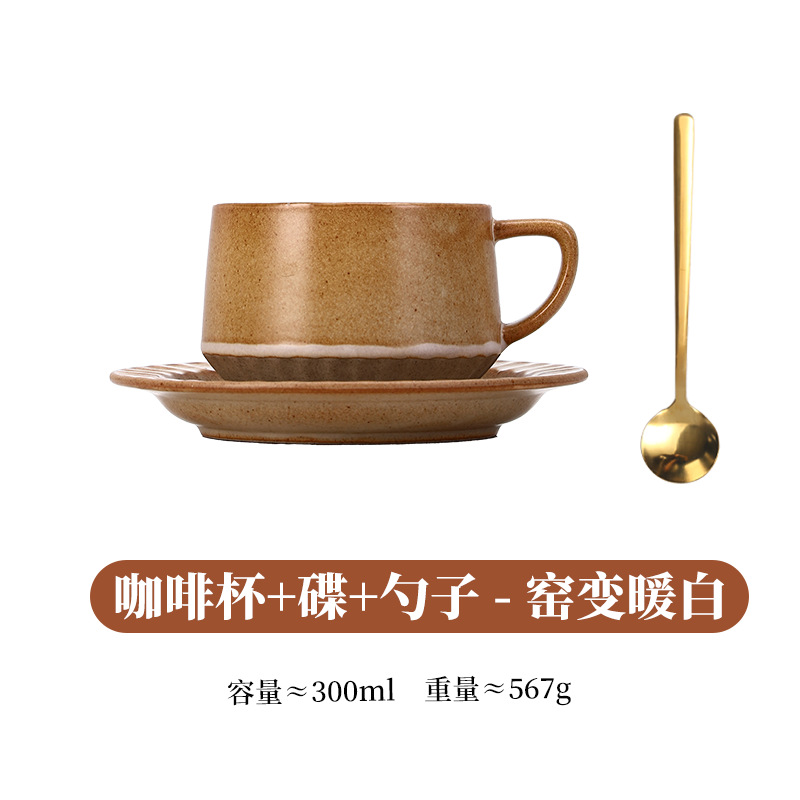 跨境咖啡杯碟套装北欧风复古粗陶奶茶杯日式陶瓷杯商用咖啡杯