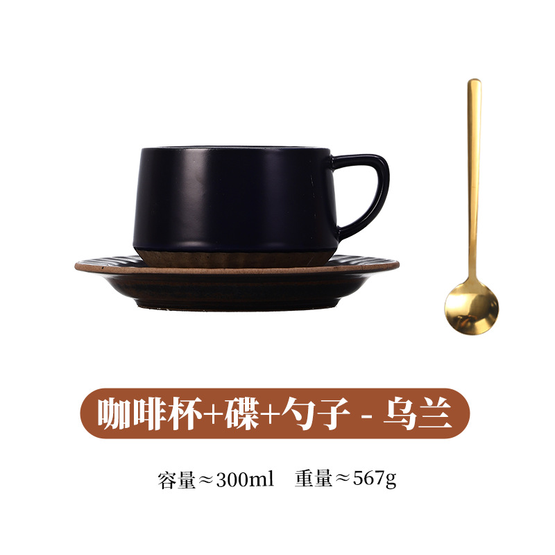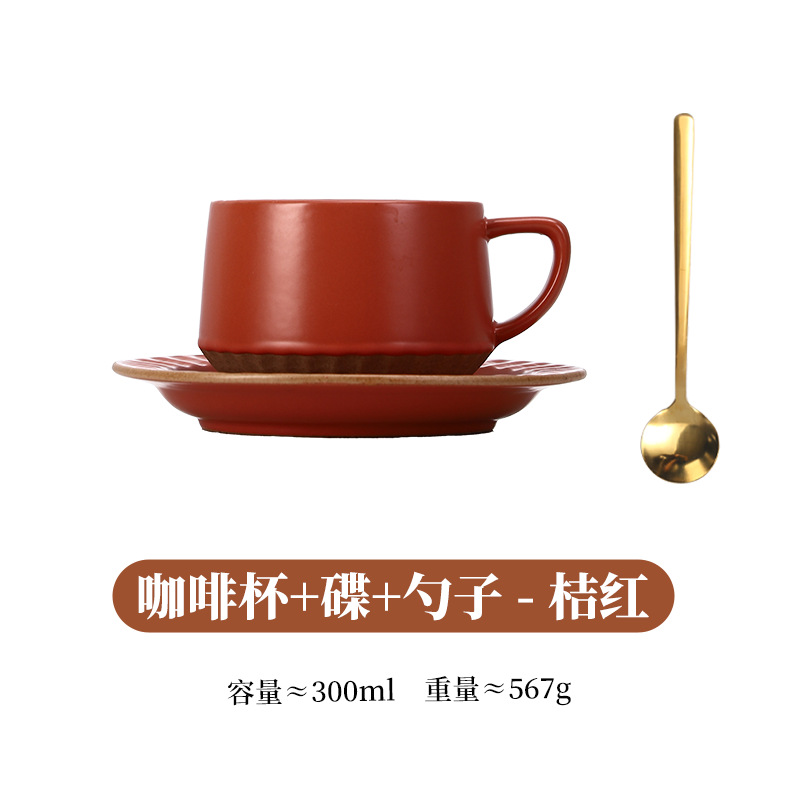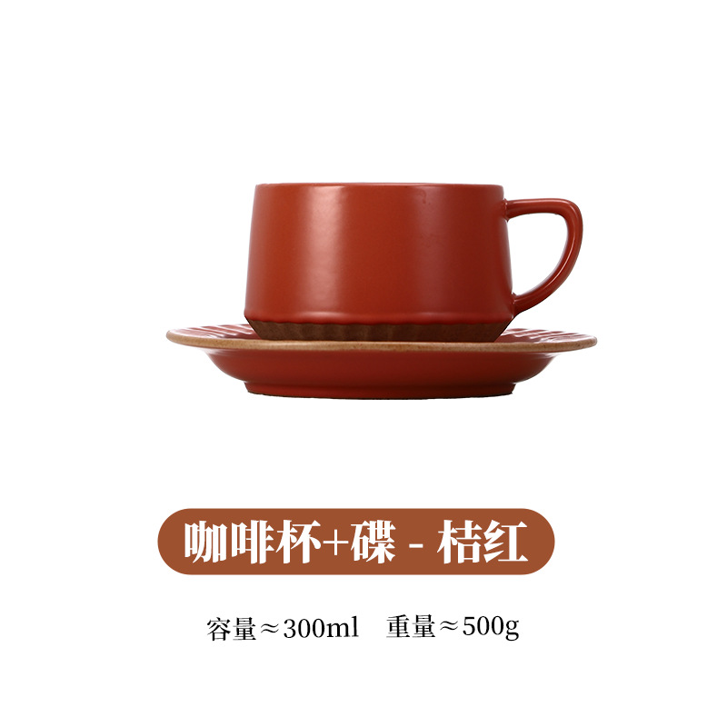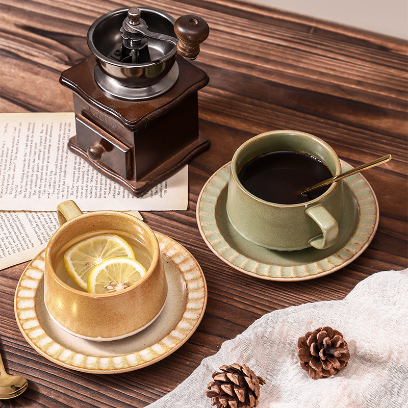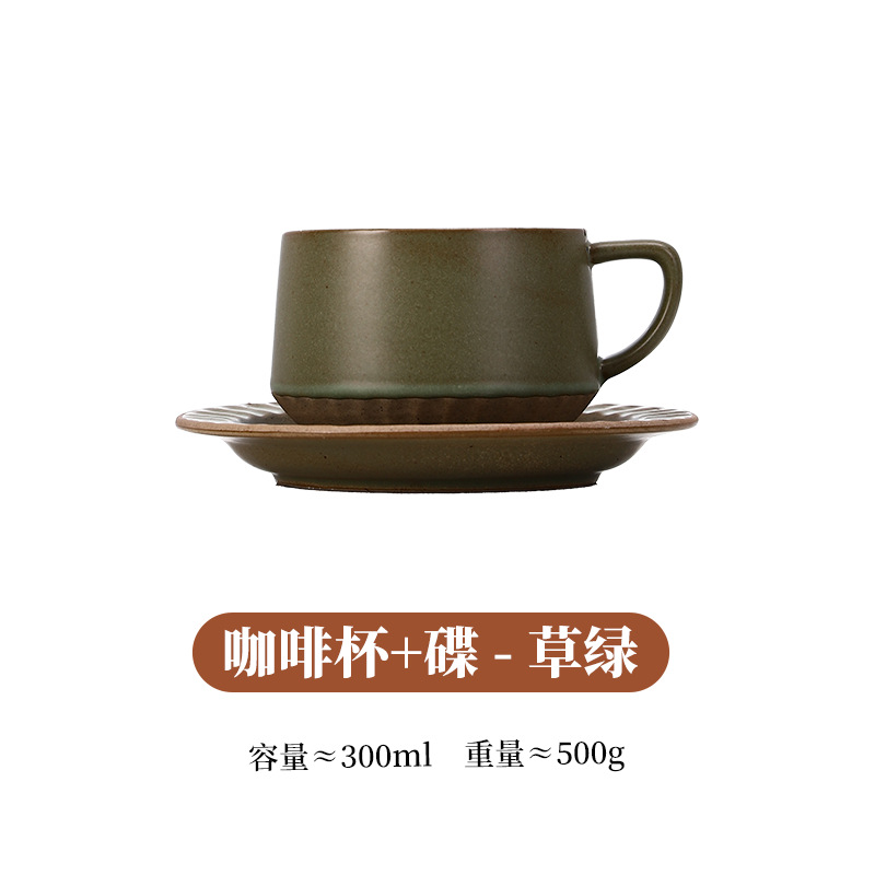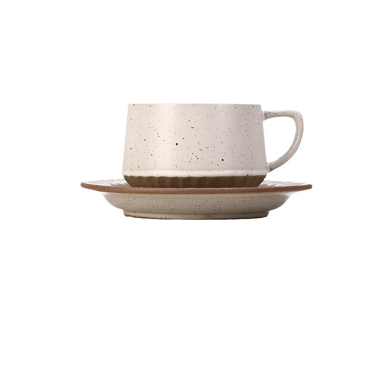 跨境咖啡杯碟套装北欧风复古粗陶奶茶杯日式陶瓷杯商用咖啡杯
